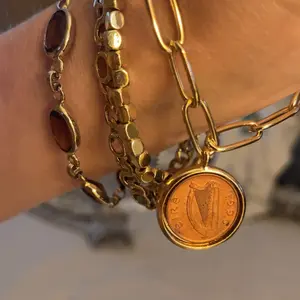 Beautiful design and beautiful goldtone! It has very very similar tone as my pure gold jewelries!!! The Irish Penny charm makes it even more special. I love it.