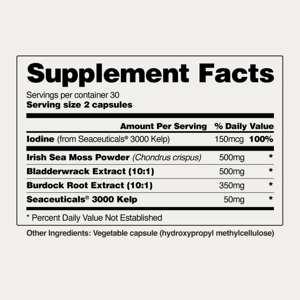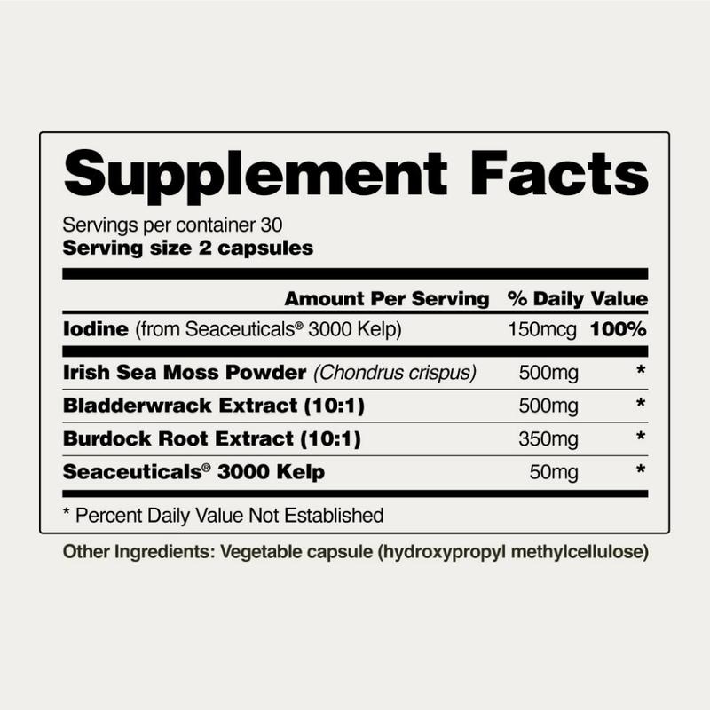 ·Seaceuticals Iodine – Bioavailable iodine, tyrosine, and selenium extracted from organic kelp support healthy thyroid function, balanced hormones, and sustained energy.*