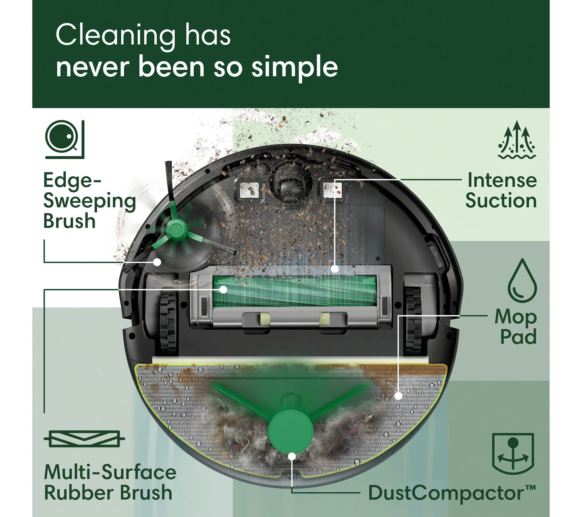 ·Includes Roomba 205 DustCompactor Vacuum/Mop Combo Robot, charging dock, two mop pads