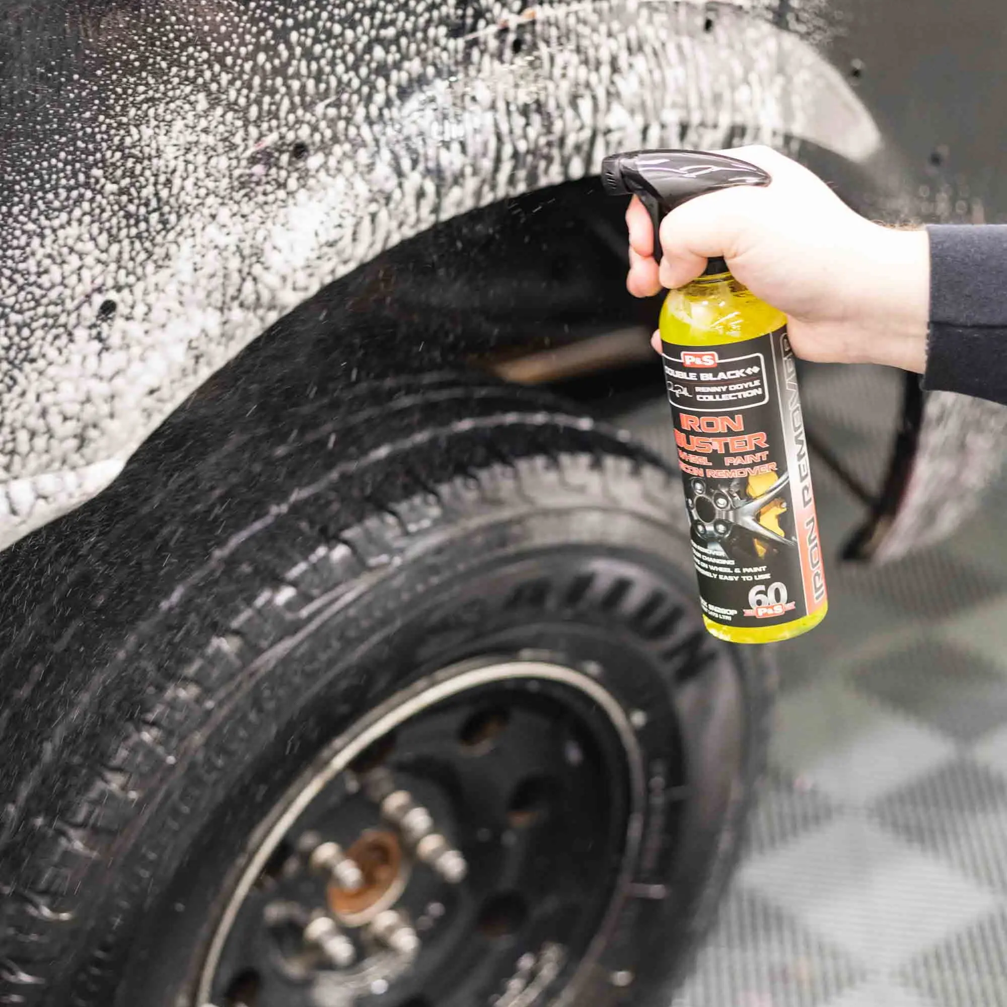 Iron Buster Wheel & Paint Decon Remover is a color changing, fast acting, pH balanced cleaner formulated to safely dissolve ferrous particulate from wheel and painted surfaces. Iron Buster will safely and effectively remove embedded iron particulate along with other contaminants from wheels and painted surfaces.
