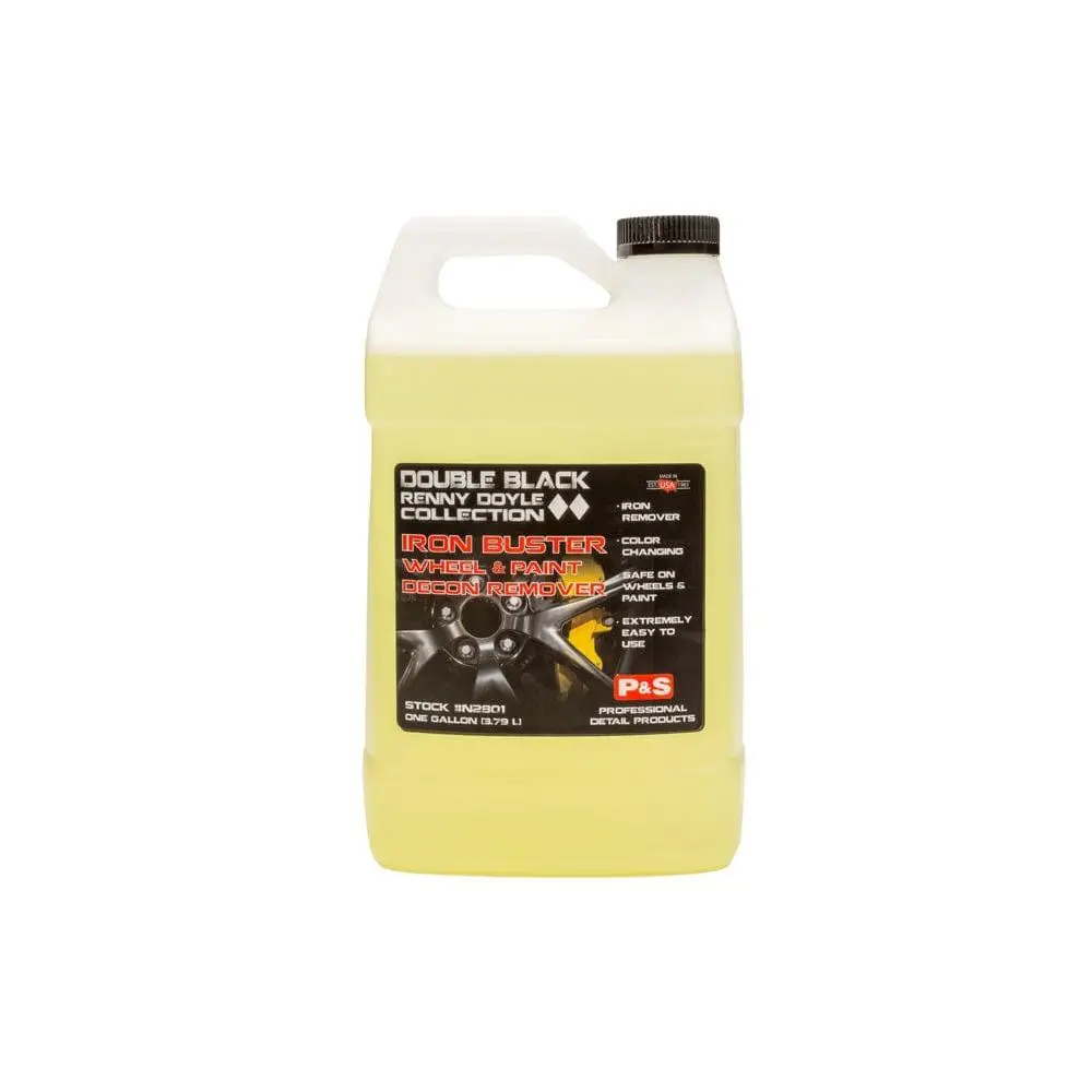 P&S Iron Buster Wheel & Paint Decon Remover is a fast-acting, pH-balanced cleaner that is designed to safely dissolve ferrous particulates from wheels and painted surfaces. It is a color-changing product that will quickly turn purple when applied to surfaces with plenty of iron particulates. Once applied, it will effectively remove embedded iron particulates along with other contaminants from wheels and painted surfaces. Simply rinse the surface after use to reveal a clean surface. This product is an effective and safe choice for removing iron particulates and other contaminants from your vehicle's wheels and painted surfaces.