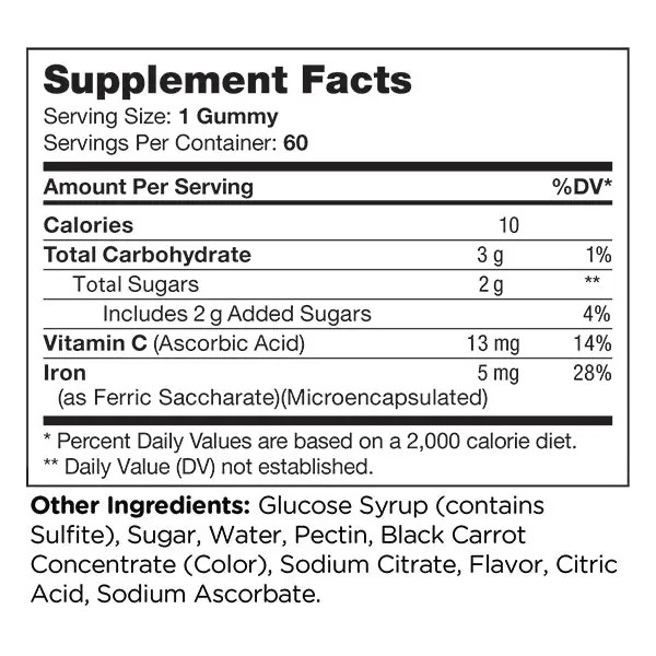 🍬 Zahler Iron Gummies with Vitamin C - 60 Count