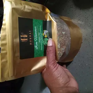 My God excited about the arrival of my iron Hammer herbal tea only to open it and see it a half of bag just above the clear part,Totally disappointing like are you seriously for the amount of money spent,You're give half a bag of the product. DISAPPOINTING BAD BUSINESS