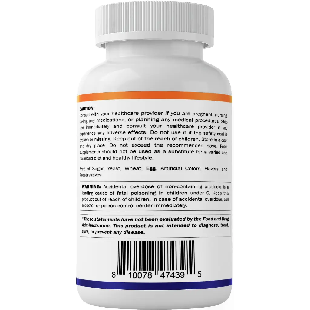 Ingredients include Iron, Vitamin C, Microcrystalline Cellulose, Dicalcium Phosphate, Croscarmellose Sodium, Stearic Acid, Silicon Dioxide, and Vegetable Magnesium Stearate. Take 1 tablet daily with 8-12 oz of water or as directed by your healthcare provider.