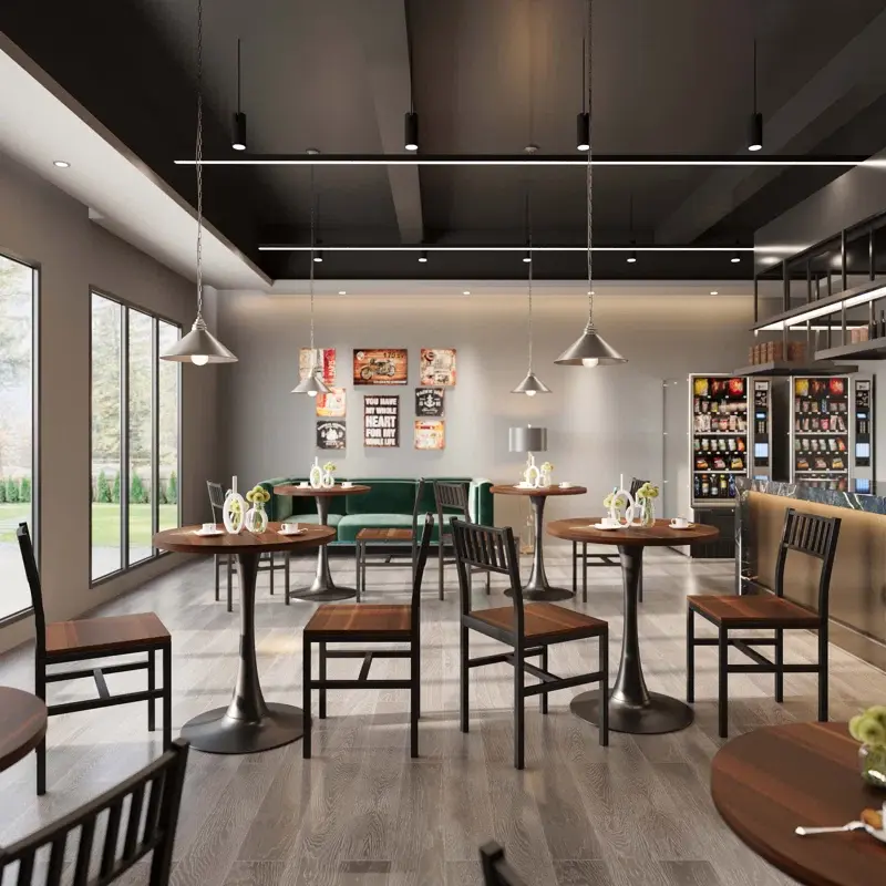 Industrial Elegance: The round table and metal frame chairs exude a sophisticated industrial vibe. The clean lines and minimalist design add a touch of modern elegance to your dining space.