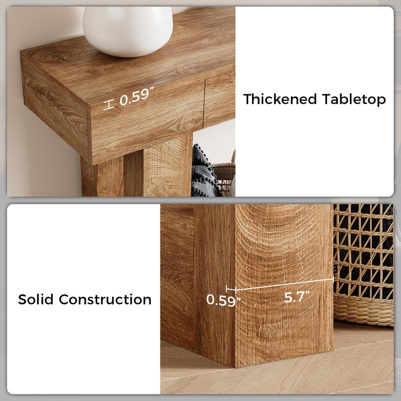 Farmhouse & Rustic Style:Drawing inspiration from farmhouse design, this wood grain console table boasts a vintage but simple appeal that provides a warm and inviting atmosphere to your home.