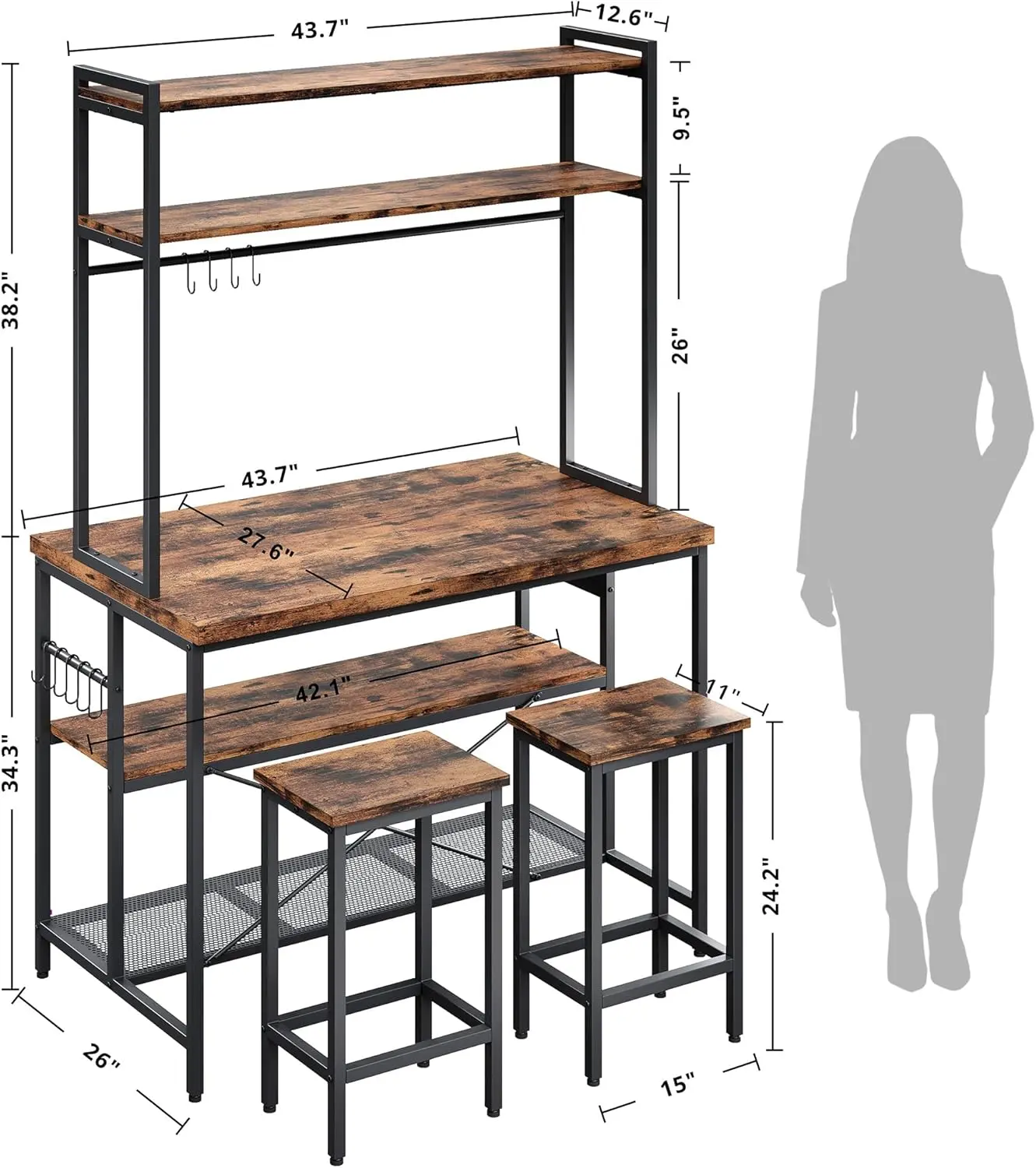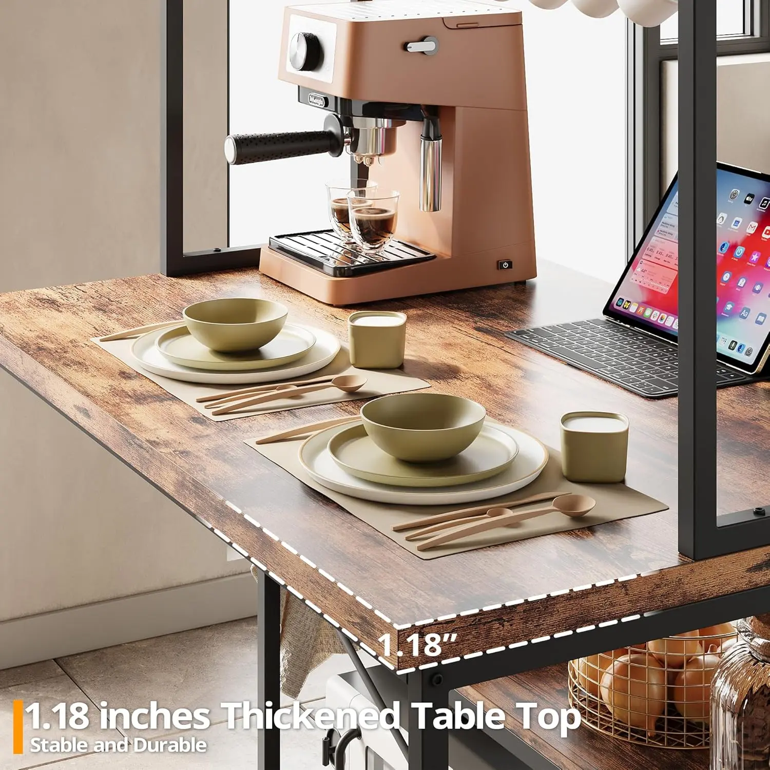 ·30mm Thick Tabletop: Due to the thick wooden tabletop and sturdy metal frame, the dining table with storage(43.7''W x 27.95''D x 72.05''H inches) is stronger, more durable and stable, easily supporting up to 200 pounds. The natural wood grain finish on the surface blends seamlessly with the black metal frame, making it perfect for everyday use.