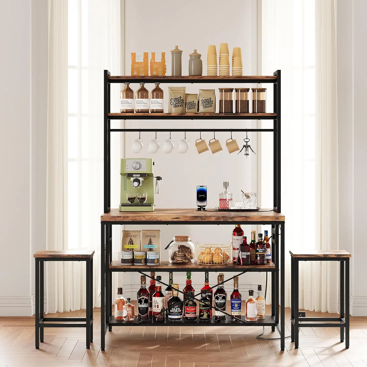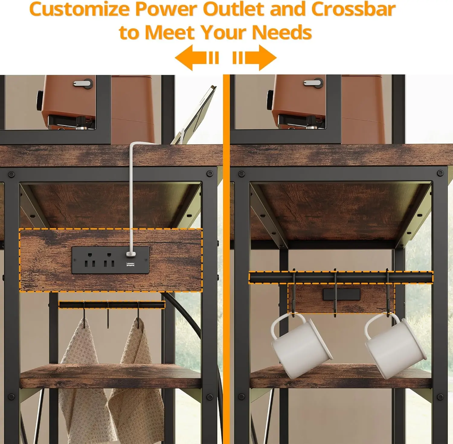 ·4 Power Outlets with 2 Meter Power Cord: Both side outlets and crossbar position can be adjusted left and right, you can freely adjust according to your own needs. The 2-meter power cord allows you to use it anywhere in your dining room, kitchen or beyond. Conveniently charge your kitchen essentials such as coffee maker, toaster, microwave, oven.