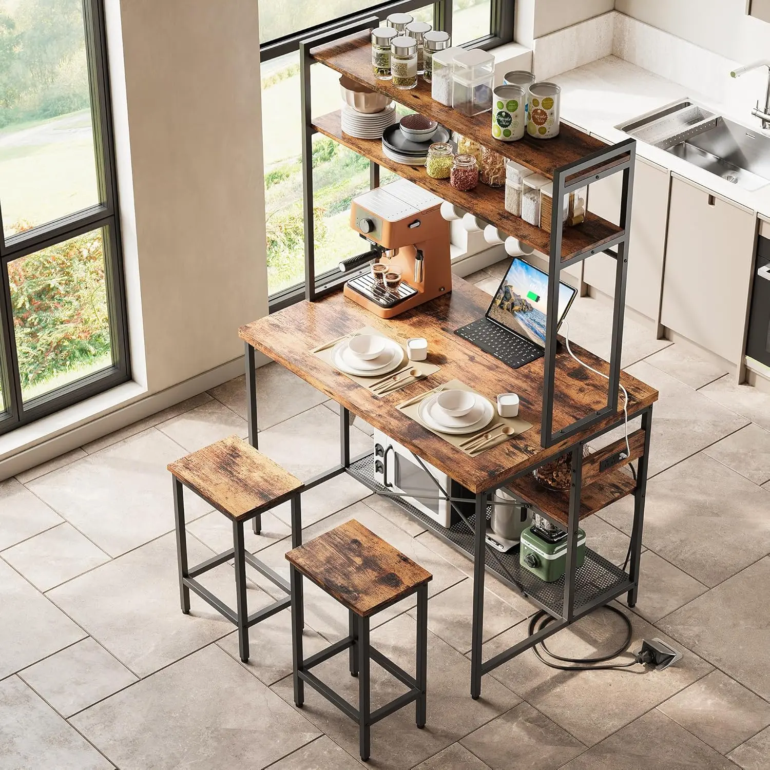 ·Kitchen Island Table with Seating: Compared with the ordinary kitchen island table in the market, we are equipped with two stools that perfectly fit the table size, making the kitchen match more integrated and no need to buy extra stools.