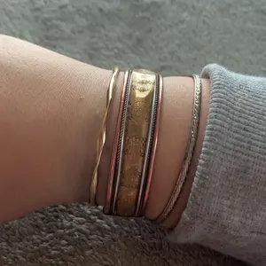 01/28 cute lil bangle bracelets! They feel very light, probably plastic, but I’ve worn them in the shower and they haven't stained my wrists or tarnished (yet)🤞🏼