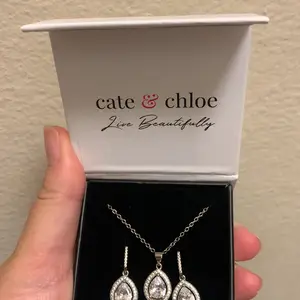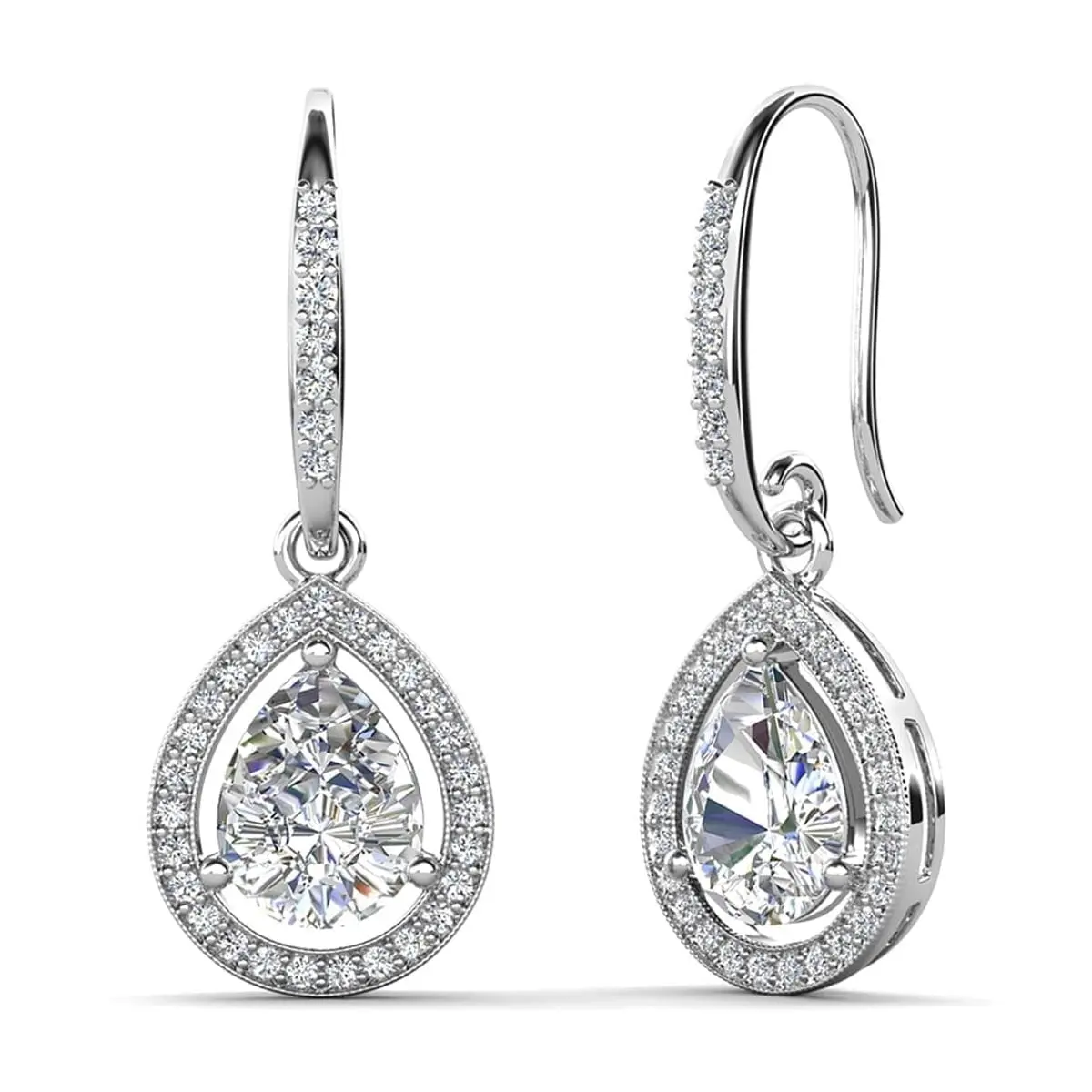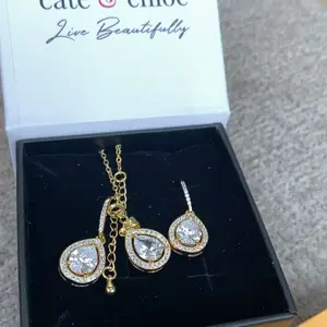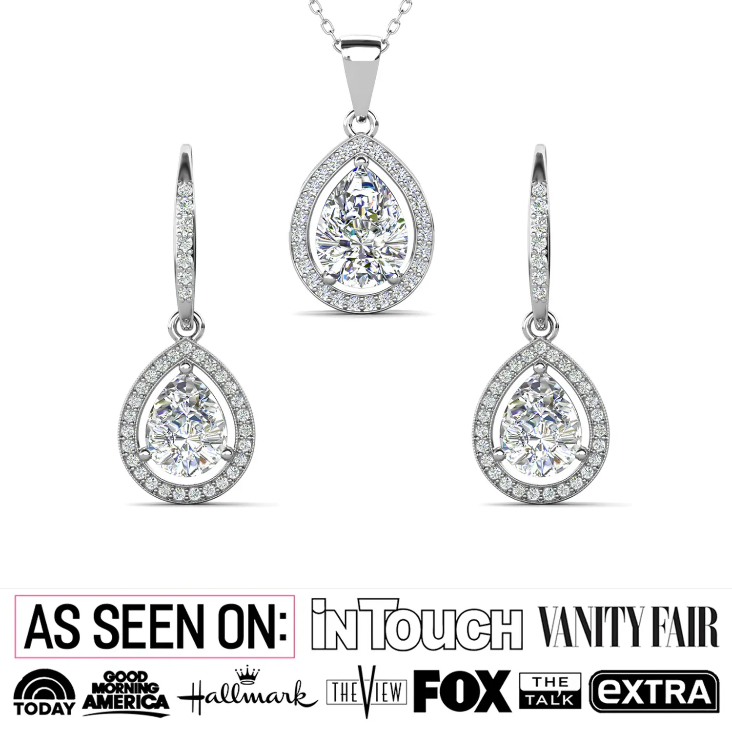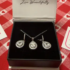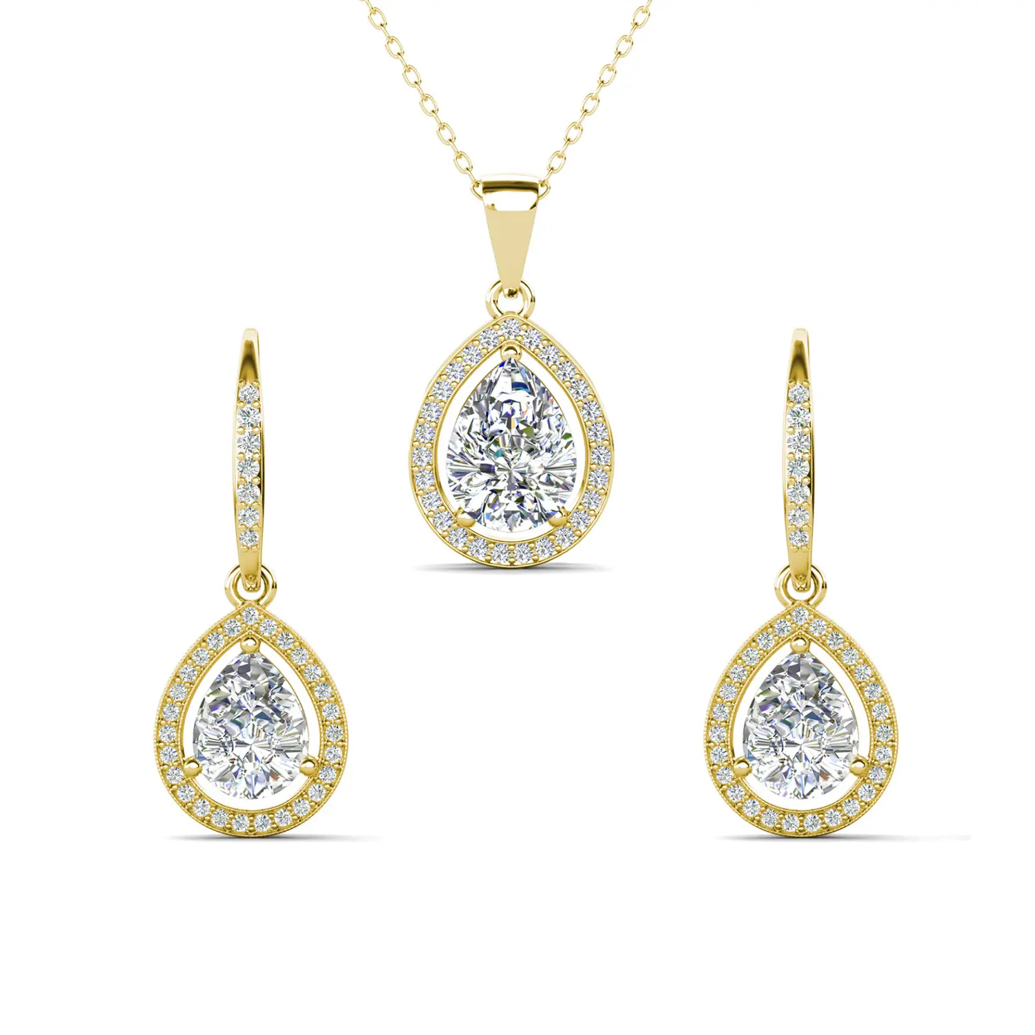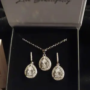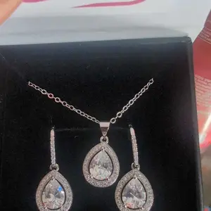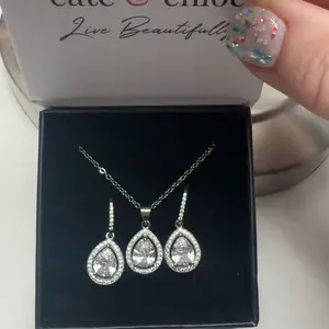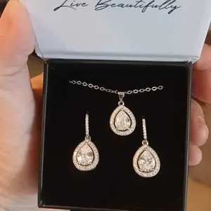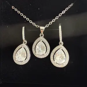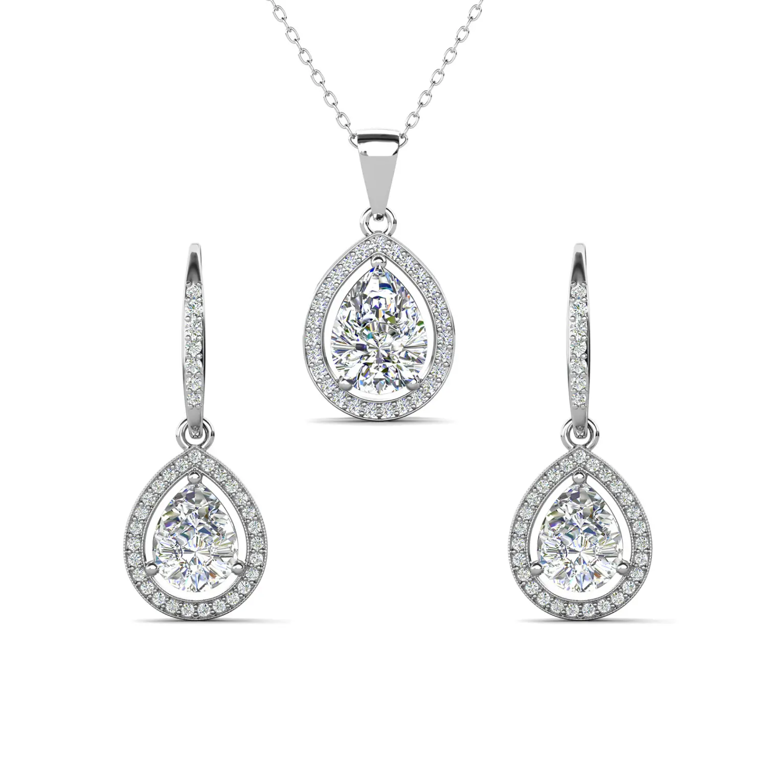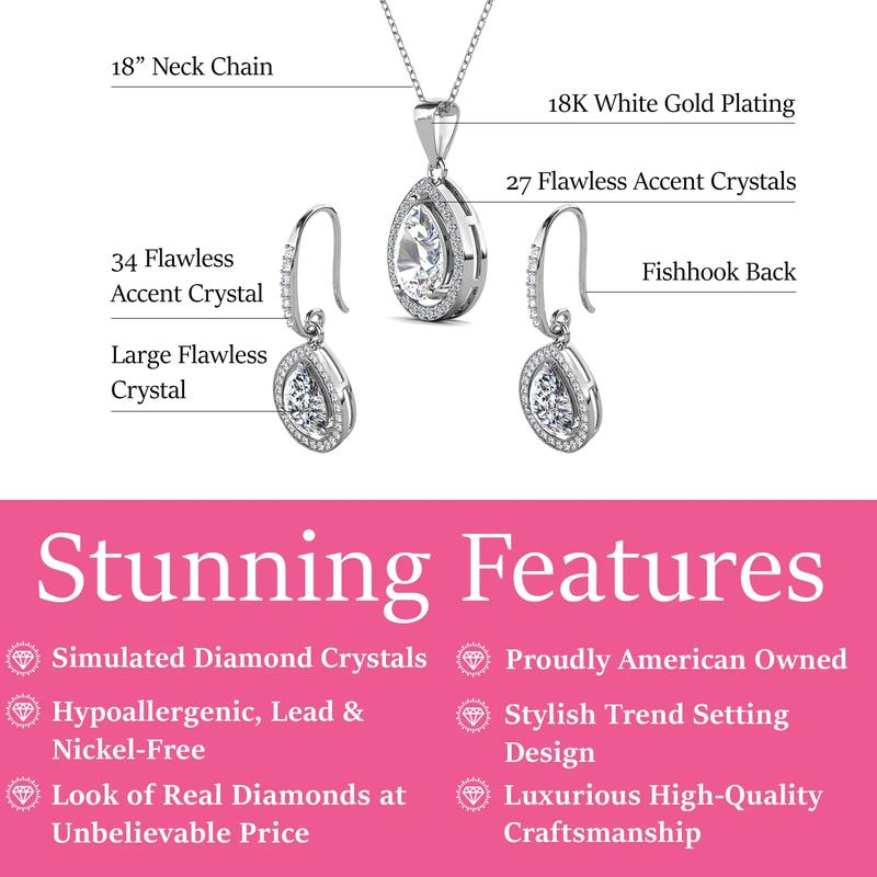 Isabel 18k White Gold Plated Drop Earrings and Necklace Set with Simulated Diamond Crystals