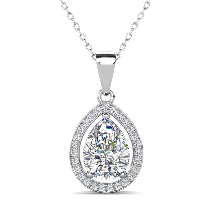 Isabel 18k White Gold Plated Halo Teardrop Necklace with Simulated Diamond Crystals