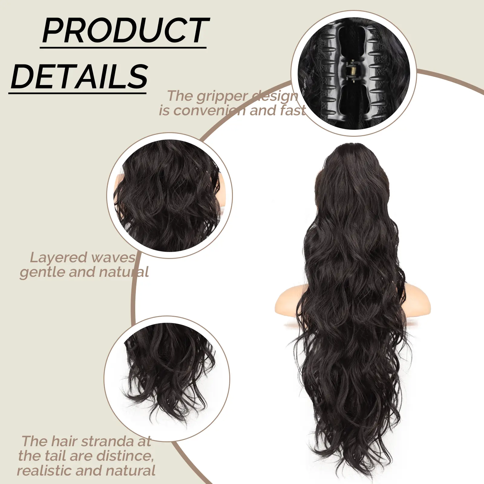 SECURE & COMFORTABLE: Designed with a strong elastic claw, this ponytail stays firmly in place without slipping. The seamless blend ensures a natural look while giving you all-day comfort.