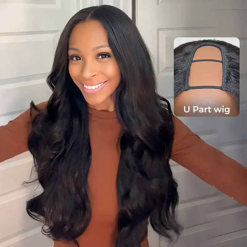 • U Part Glueless Wig: Made from Premium human hair, it can be restyled as desired.