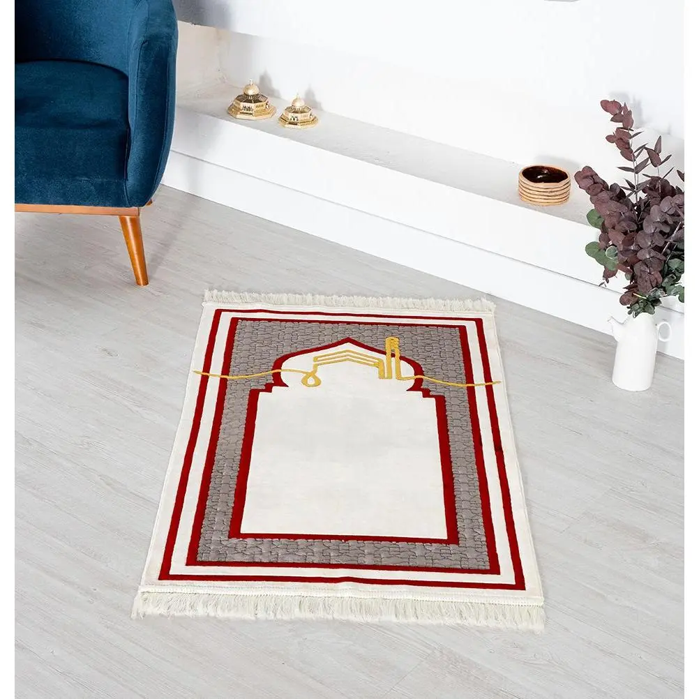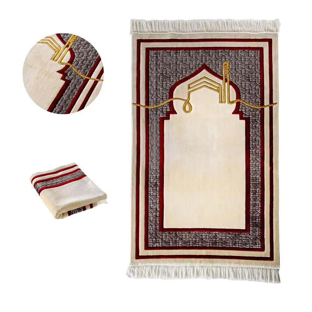 5. Sukoon Plush Velvet Islamic Prayer Rug - Grey