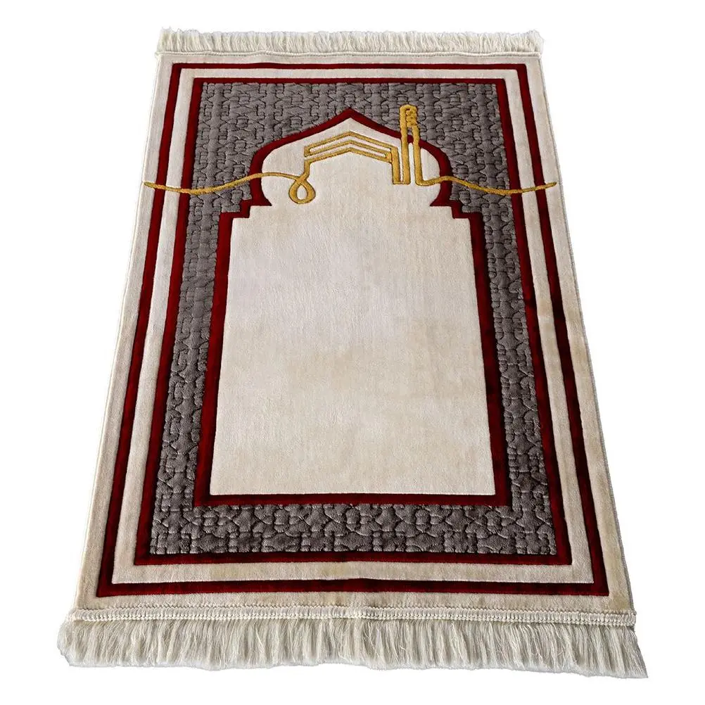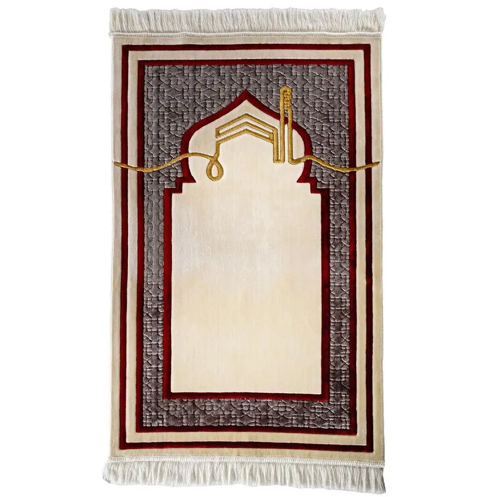 Sukoon Plush Velvet Islamic Prayer Rug - Grey