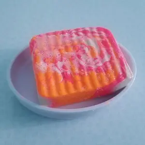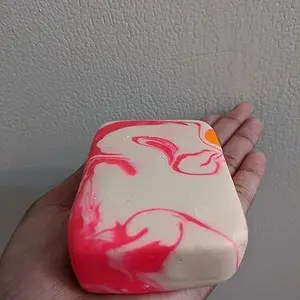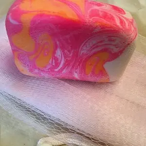 Got a nice, hefty bar (as always!) and extra excited about that because this scent is more of a ripe fruit sweet vs sugary sweet. If I had to guess what the scent was I'd say it was like papaya mango, but more on the papaya side. I love it. It's a break from all the high-pitched sweet scents. I wish I could bathe in a milk bath with this scent. The only downside is the color - even if the bleeding pink color doesn't seem to stain my tub or skin, it makes me feel like I have to make sure it's all rinsed off really well.