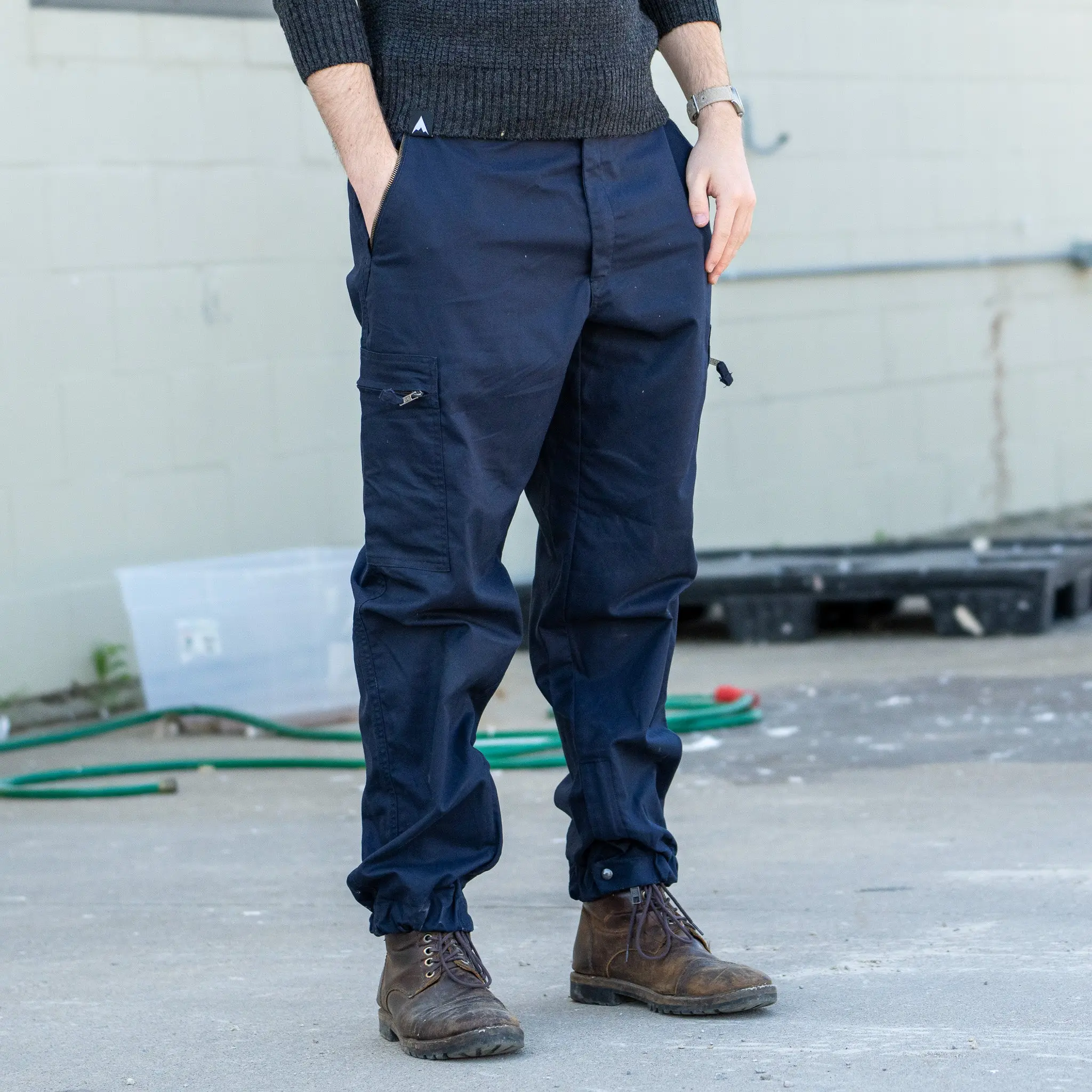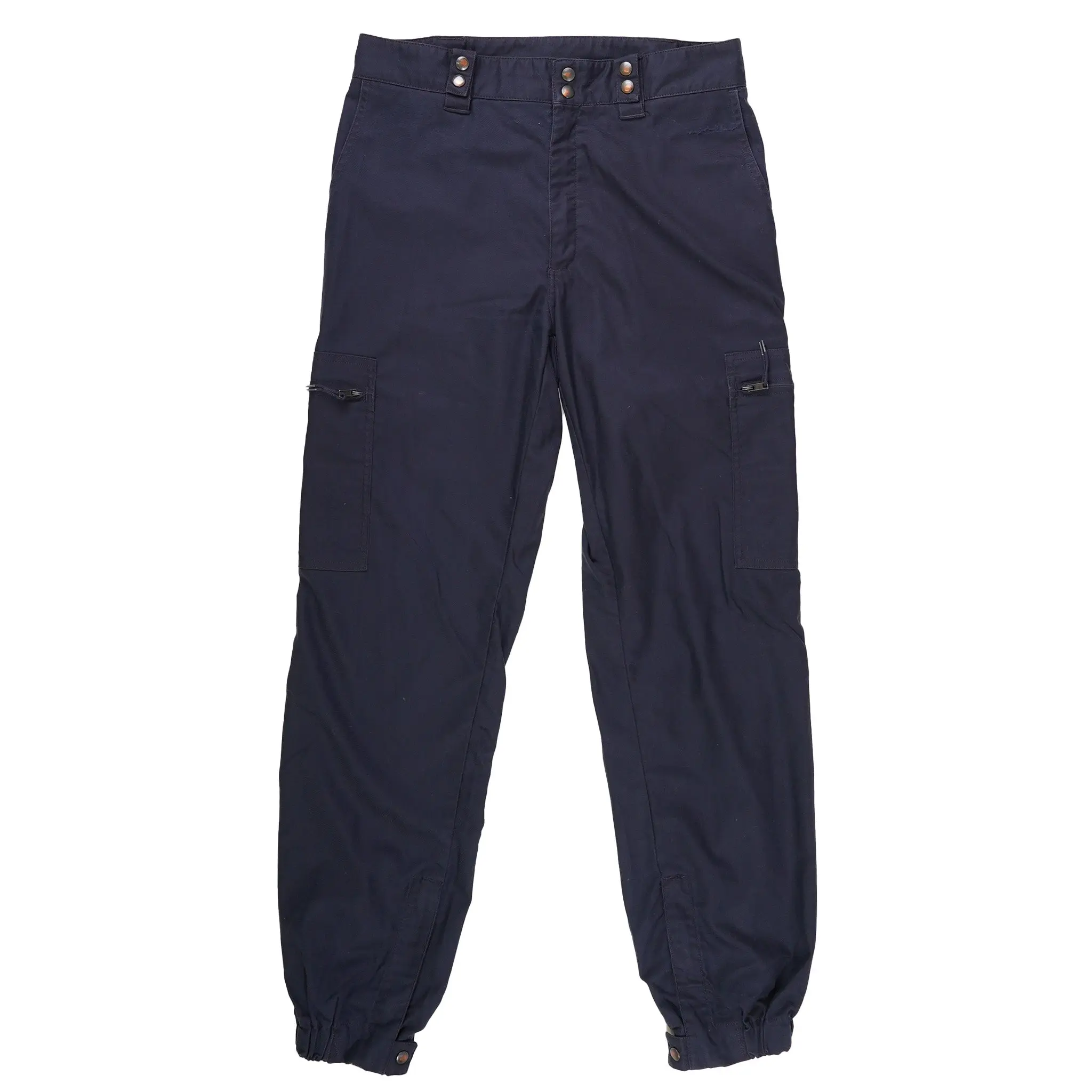 These stylish French pants come with several great features. They've got a grand total of four pockets, two on the waist and two cargo pockets. They feature a zip-up fly and snap cap closure waist. The cuffs are elasticated with snap-cap and zippers for a secure fit over boots. These pants offer the unique feature of a snapped belt loop. This allows for an officer's duty belt to be removed from the pants without removing any of the items on the belt itself.