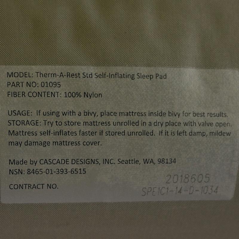 These USGI mats are a mix of off-brand and Therm-a-Rest construction. Though in good condition, they have sat folded tightly for quite a few years and, as a result, do not self-inflate quite like they used to. A great bargain, if requiring some extra effort to inflate in practice.