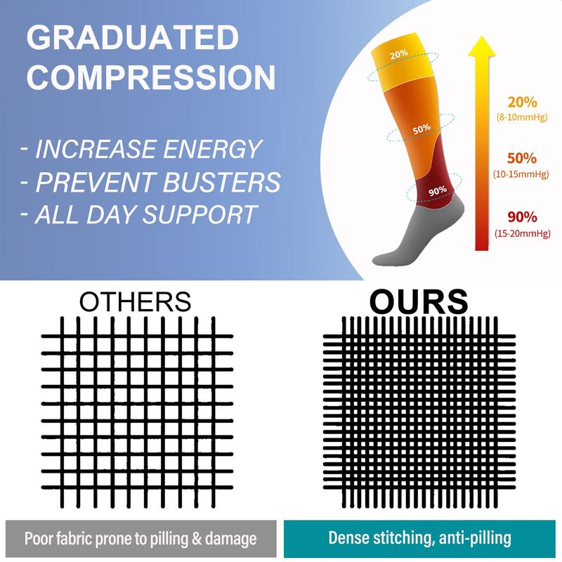 5. ISUNIE 4 Pairs Compression Socks for Women & Men, Fashionable Knee-High Socks for Walking, All Seasons, Unisex, Support Sock