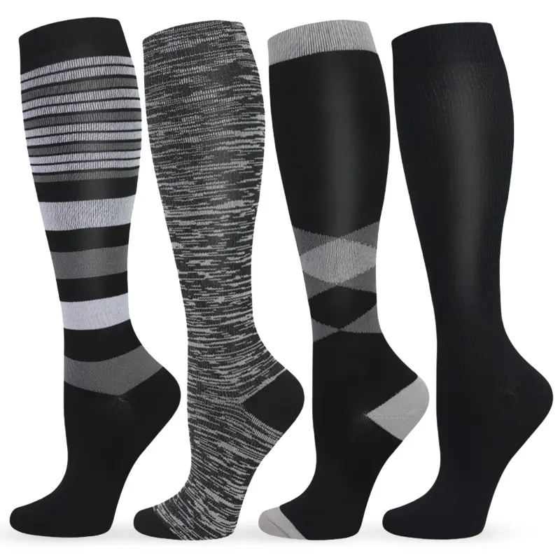 ISUNIE 4 Pairs Compression Socks for Women & Men, Fashionable Knee-High Socks for Walking, All Seasons, Unisex, Support SockISUNIE 4 Pairs Compression Socks for Women & Men, Fashionable Knee-High Socks for Walking, All Seasons, Unisex, Support Sock