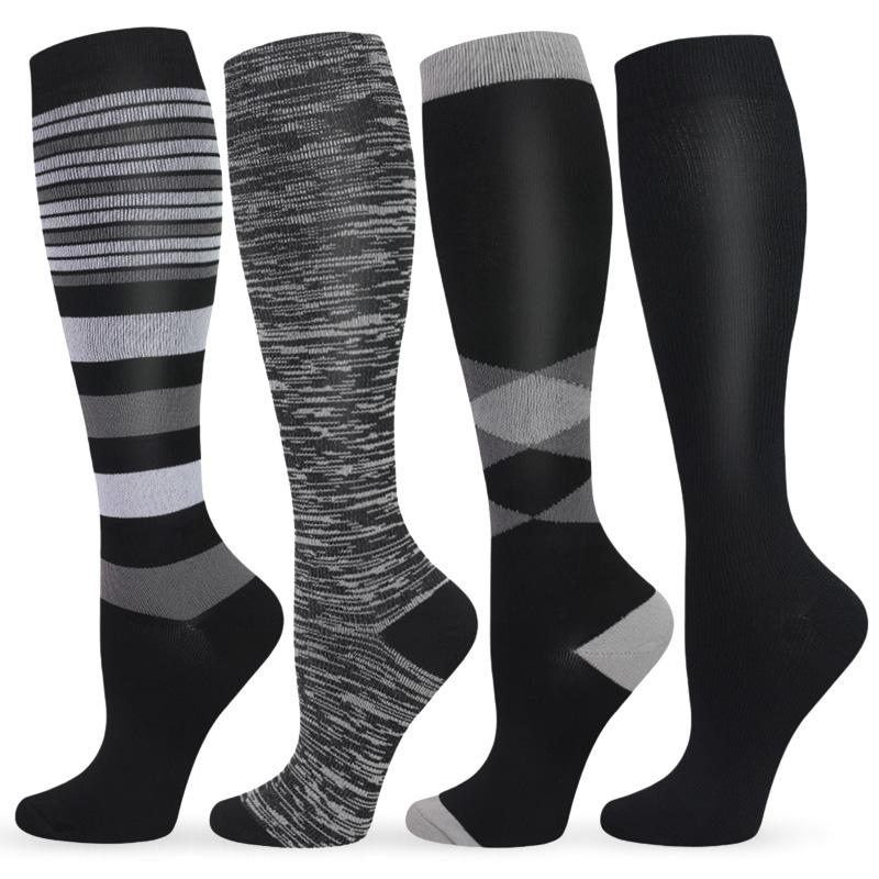 ISUNIE 4 Pairs Compression Socks for Women & Men, Fashionable Knee-High Socks for Walking, All Seasons, Unisex, Support Sock