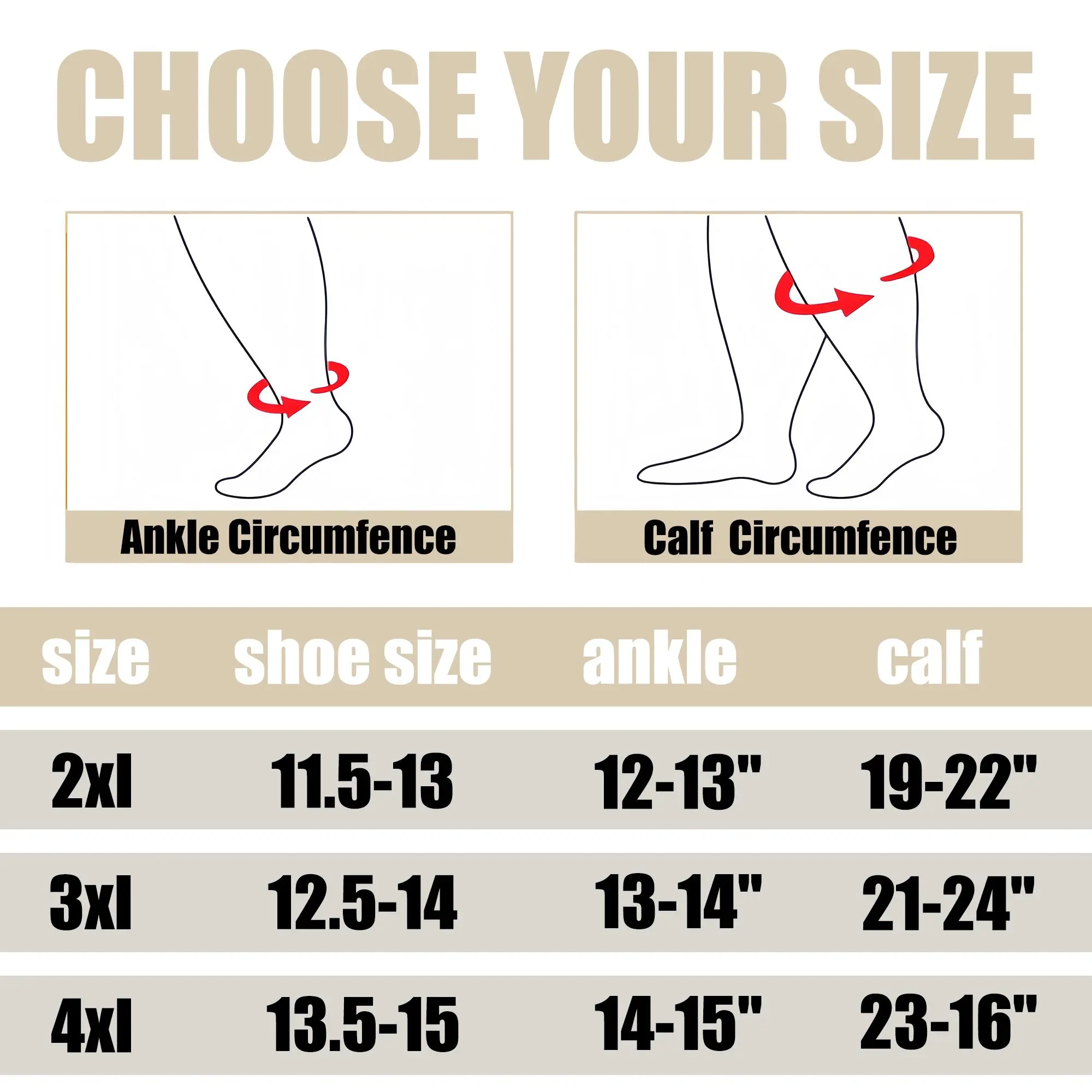 Available in a variety of sizes, including 2XL-4XL, our socks cater to diverse needs. For the best fit, refer to the included size chart and, if unsure, opt for the larger size. This ensures optimal comfort and support, no matter your activity.