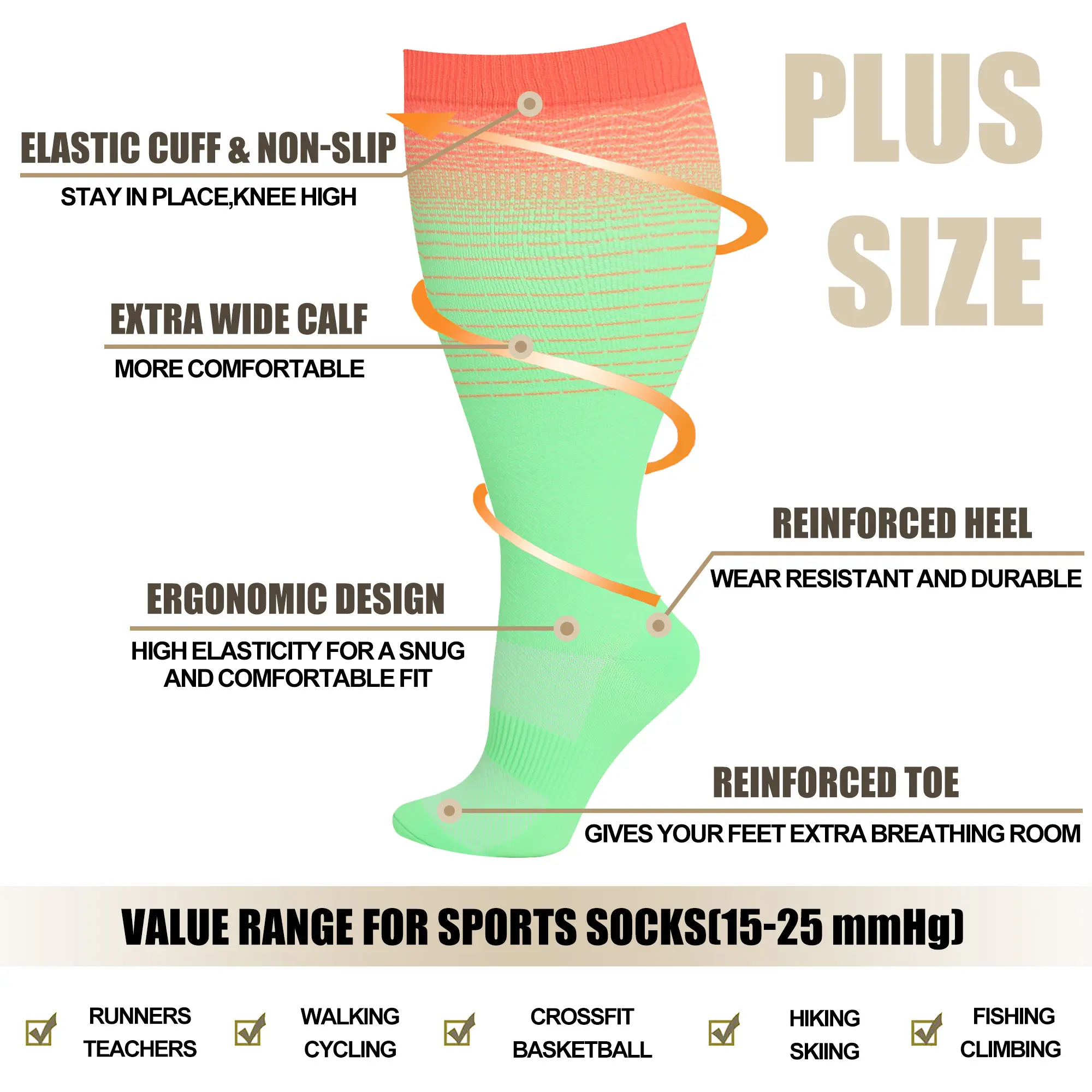 ·Wide Calf Fit: Designed for individuals with larger or plus-size calves.