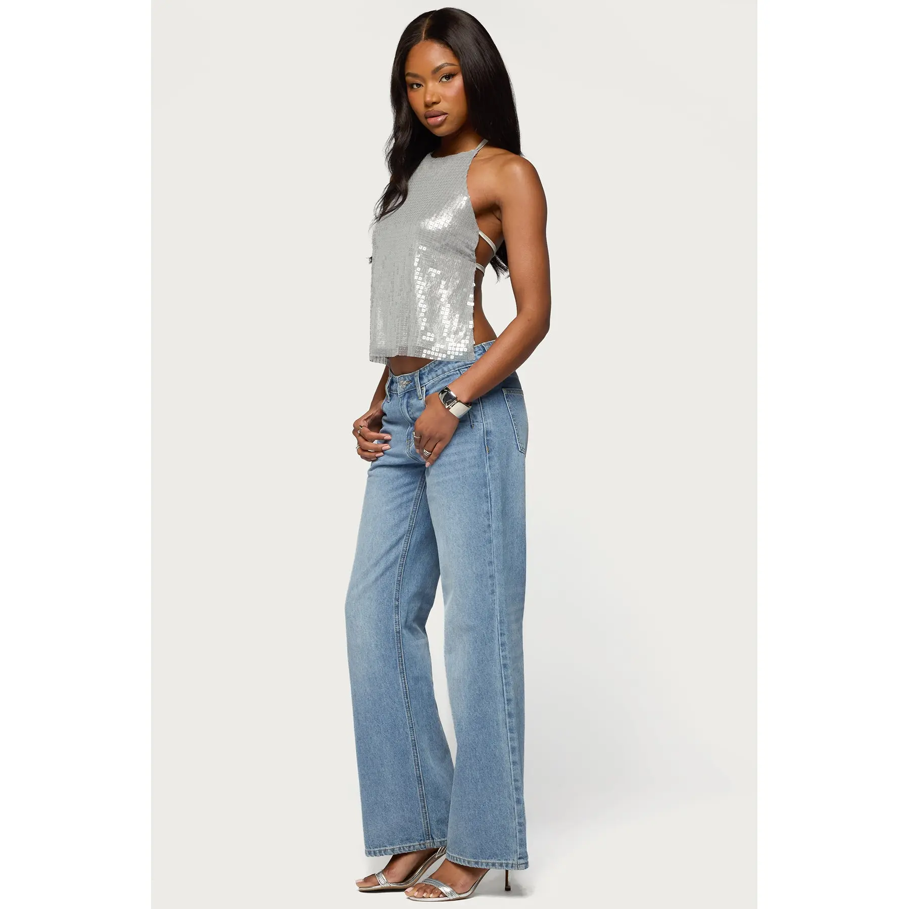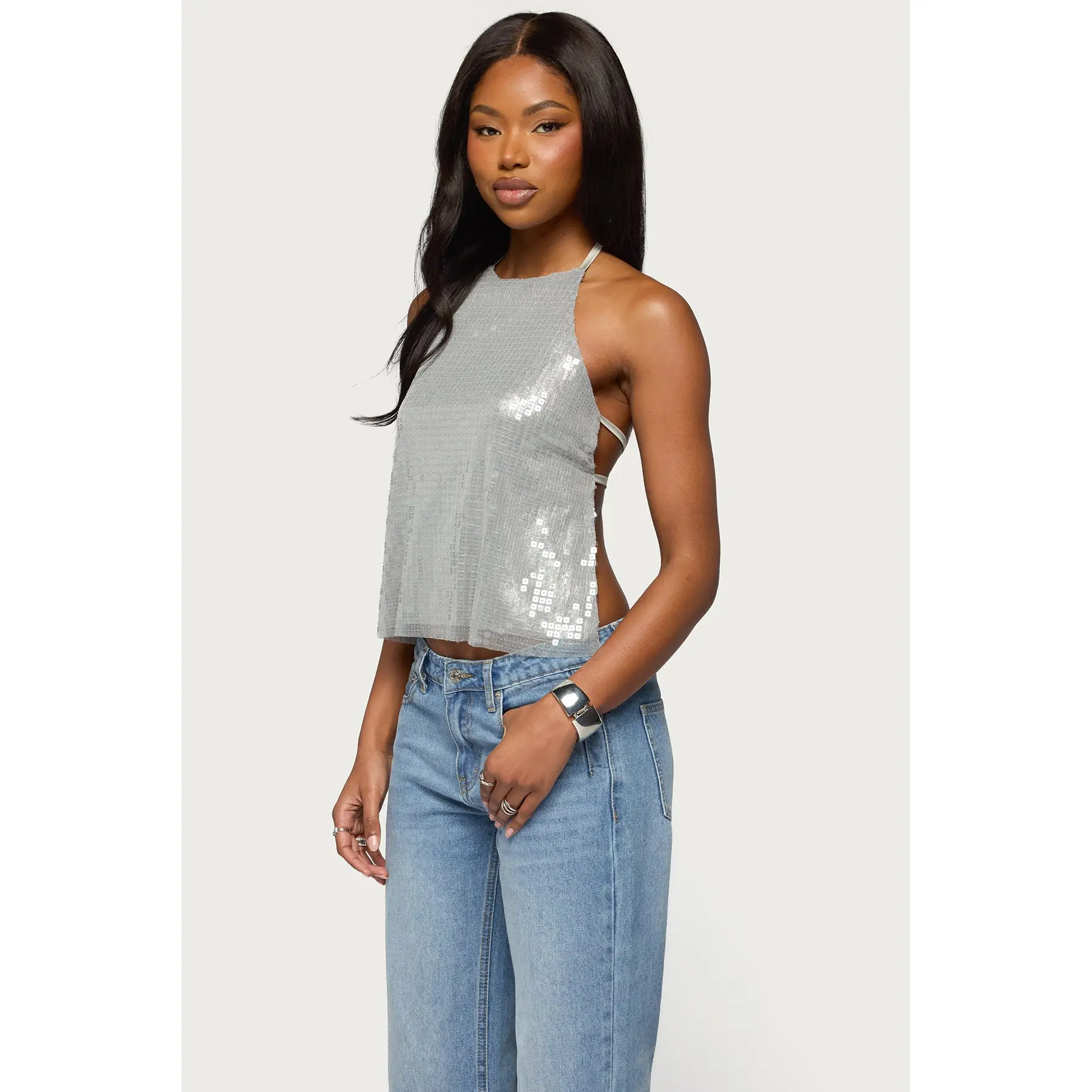 5. Itara Sequin Backless Halter Top