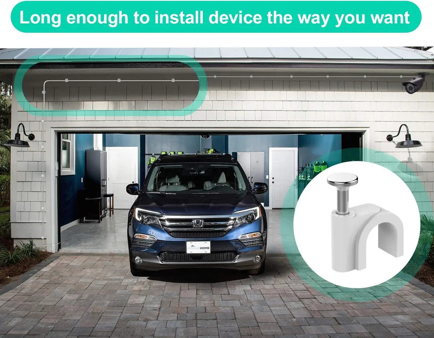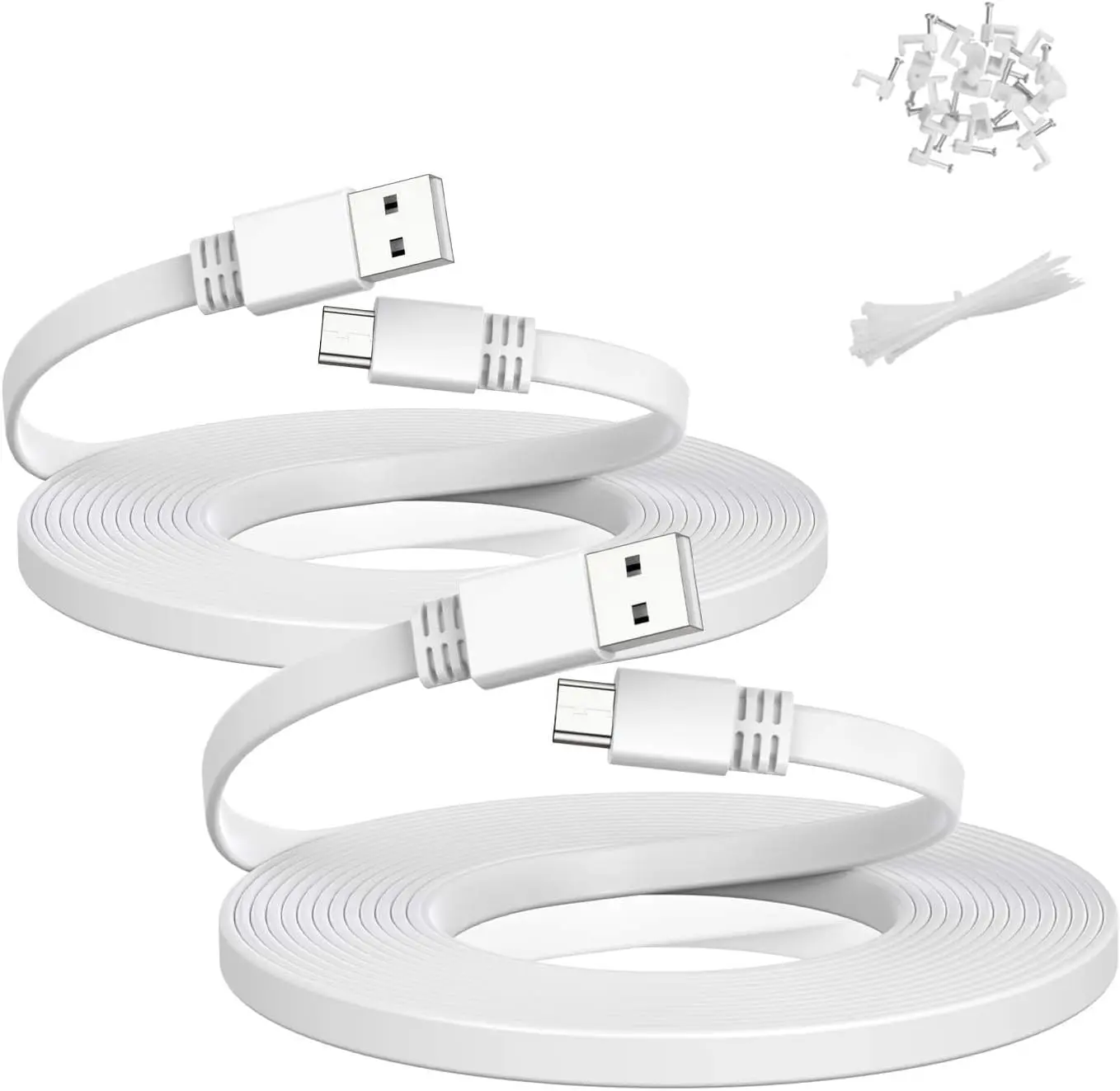 ·(Easy to Install) The rich length option of this power cable means you can set up your camera exactly where you need to, without having to worry about the distance between the power outlet and your device. The enclosed nail-in clips and ties make it easy to arrange the cable alongside the wall and stop the cable from disrupting the decor of your property.