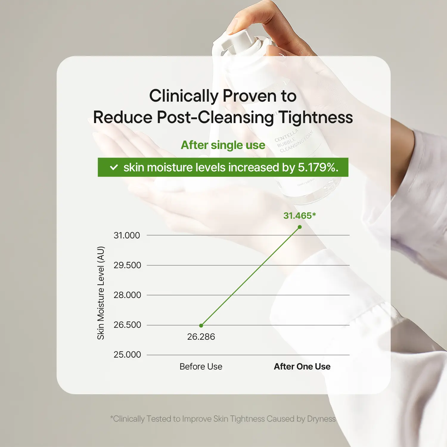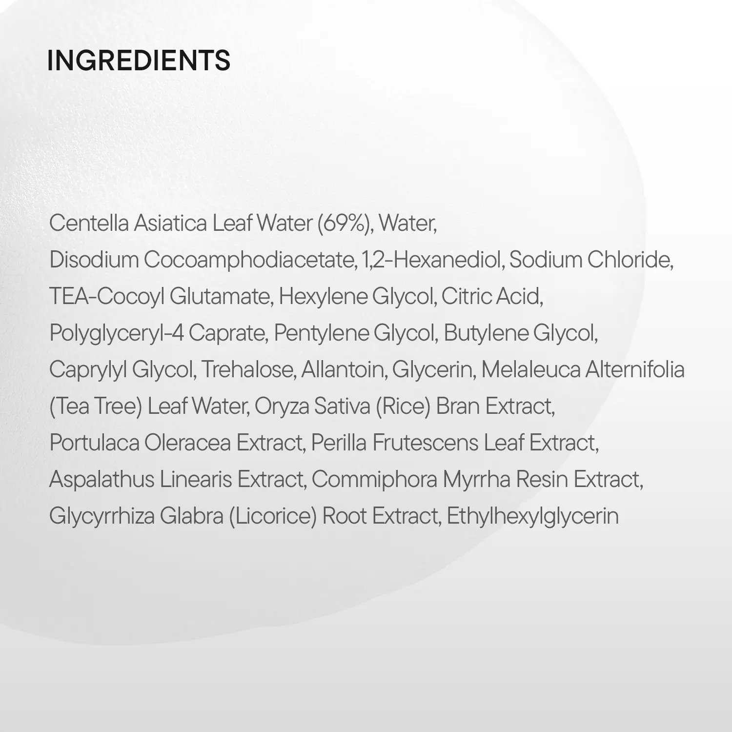 Enriched with Centella Asiatica Leaf Water, Tea Tree Leaf Water, and Allantoin to soothe and calm sensitive, tired skin during cleansing.