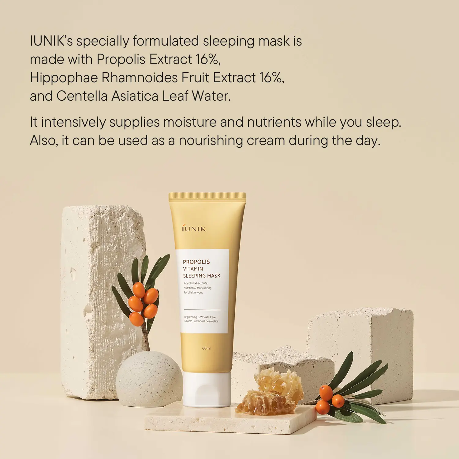 Infused with nutrient-dense propolis and sea buckthorn fruit extract, this sleeping mask deeply nourishes and hydrates while you rest. Wake up to visibly radiant, refreshed skin that looks plump, luminous, and full of life.