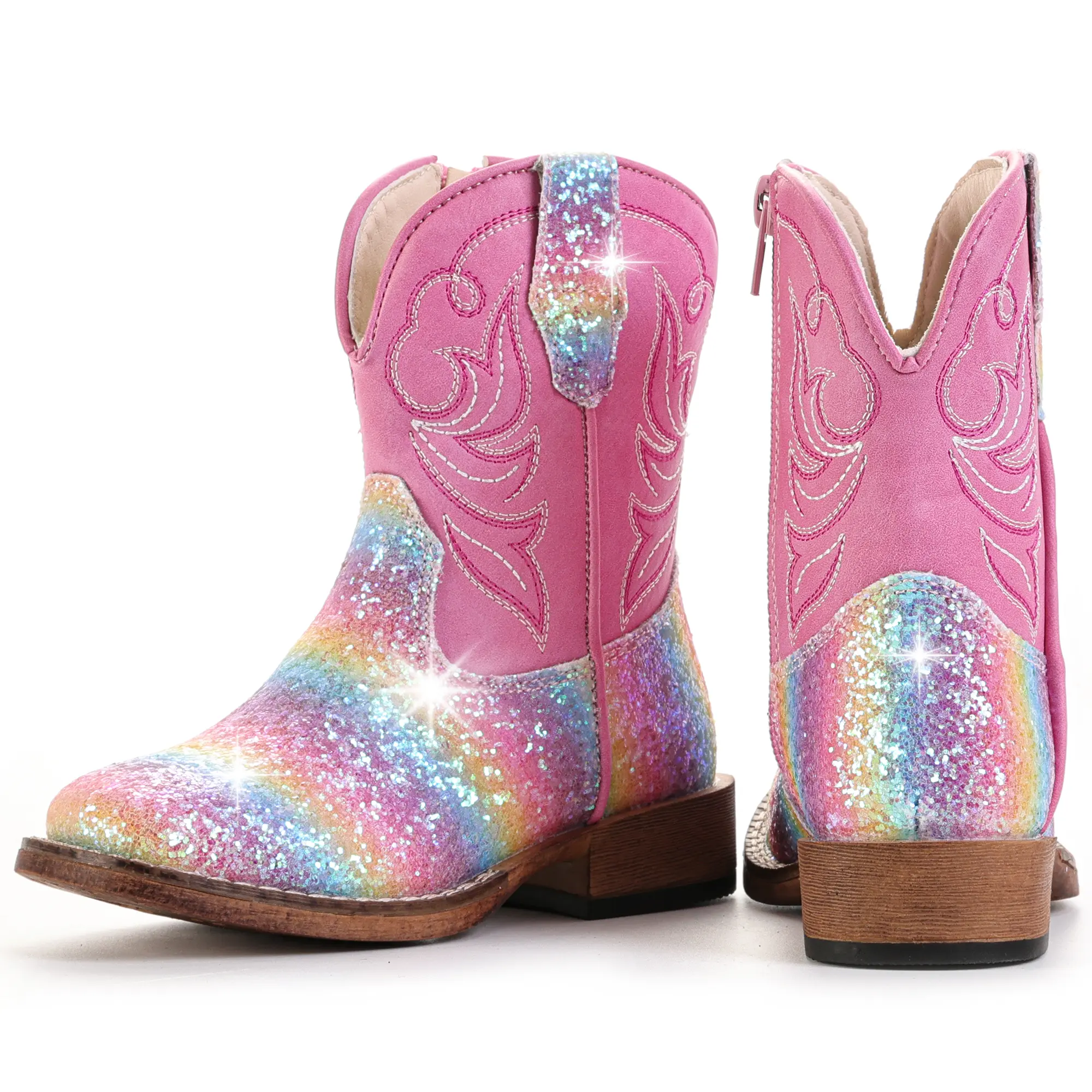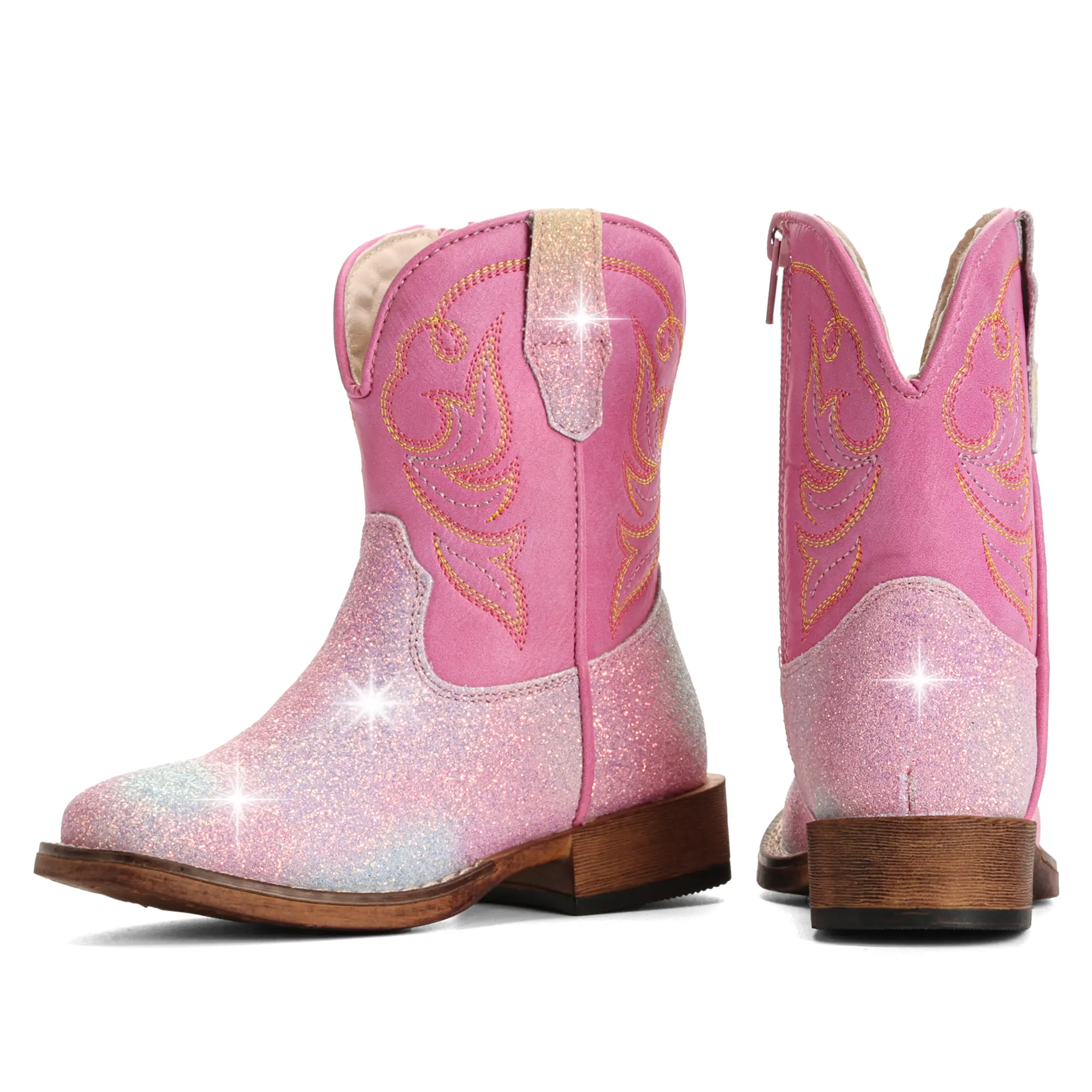 ·【Glitter Western Style】Featuring vibrant glitter and intricate embroidery,these cowgirl boots create a classic western look that makes your child stand out at school,parties,playgrounds,and photo sessions