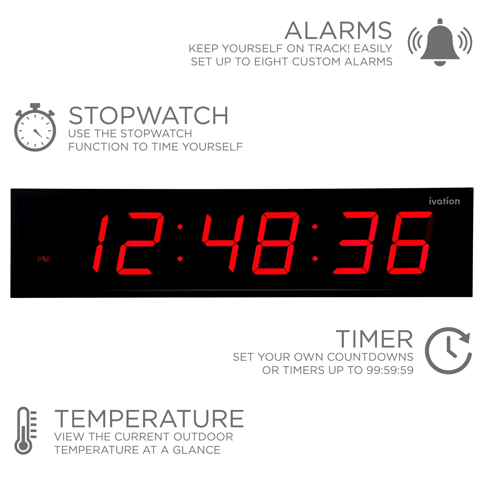 ·SLEEK, JUMBO 4-FOOT TALL DIGITAL CLOCK | Supersized Timekeeper Displays Time, AM/PM, and Temperature for Ultimate Convenience | Jumbo Sized Digits Measure 7” High for Maximum Visibility & Clarity | Powered by 10-Ft AC Adapter [Included]