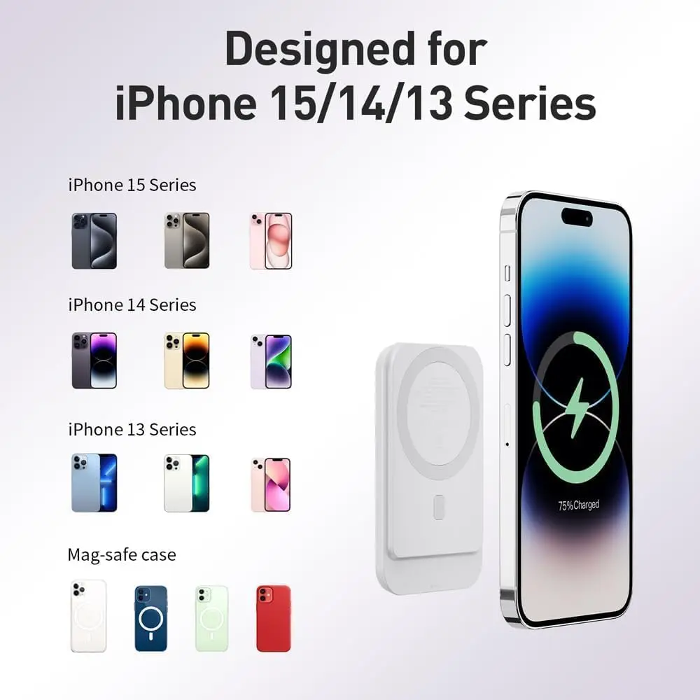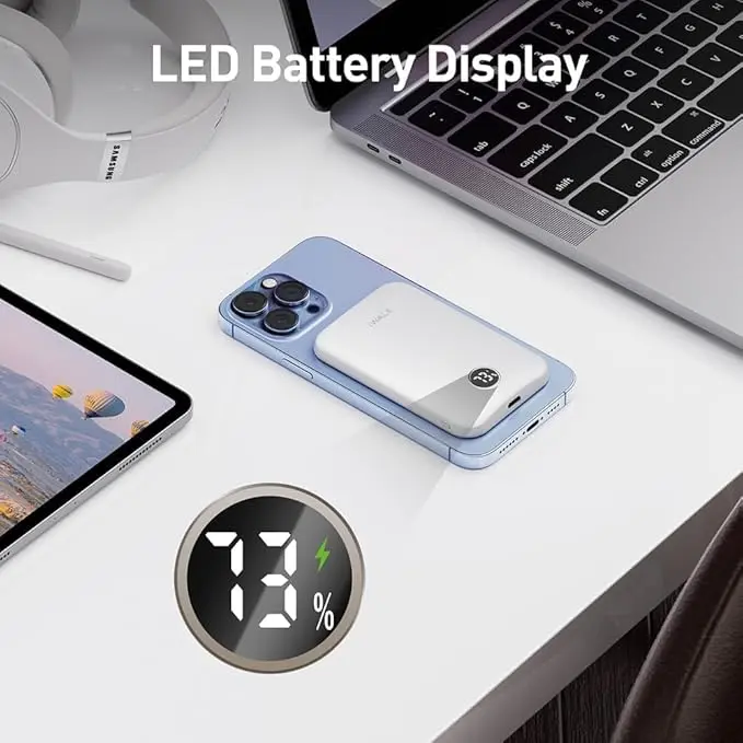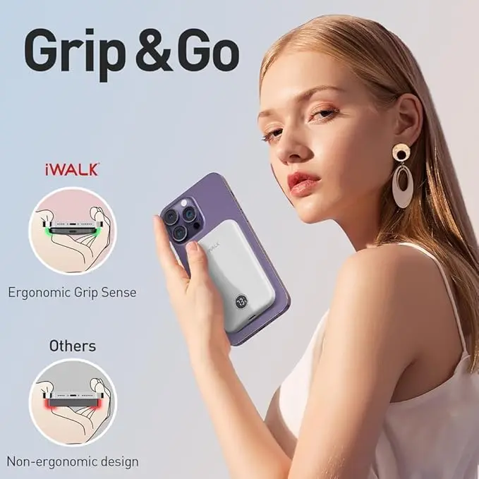 Ever find yourself scrambling for a charger while out and about? The iWALK 5000mAh Magsafe Wireless Charger is your perfect travel buddy. Designed with an ergonomic curve, it fits naturally in your hand, making scrolling or taking selfies effortless while charging. Its ultra-slim, lightweight build slips easily into your pocket or bag—ideal for busy days or trips.