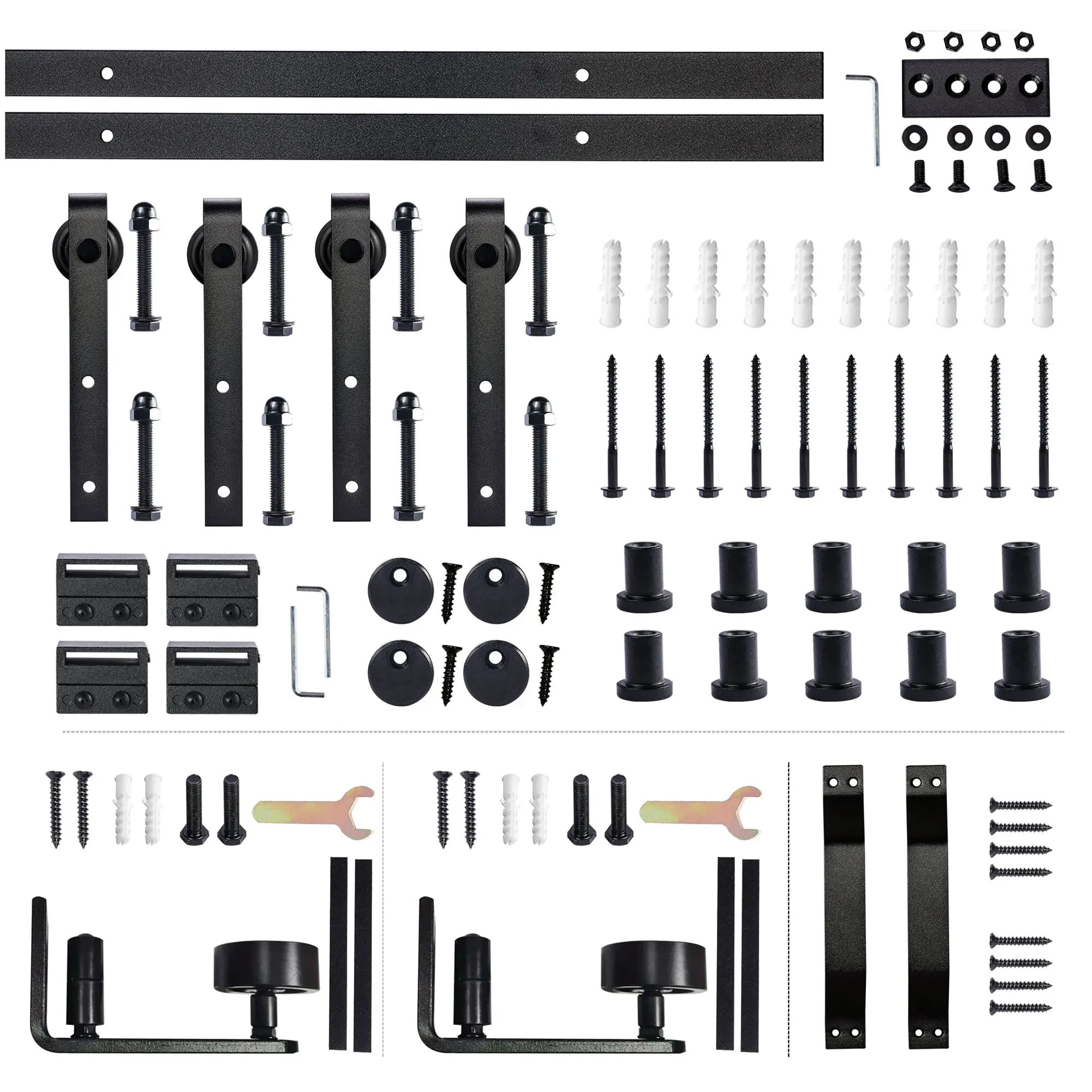 ·10FT Double door including 2 pieces 5FT sliding track, 4-door stoppers, 4-wall hangers with rollers, 1-floor guide,1 junction plate, 4-anti-jump disks,8 large bolts and 8 spacers .