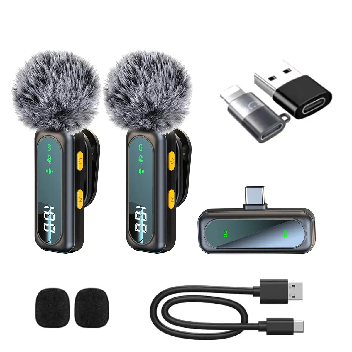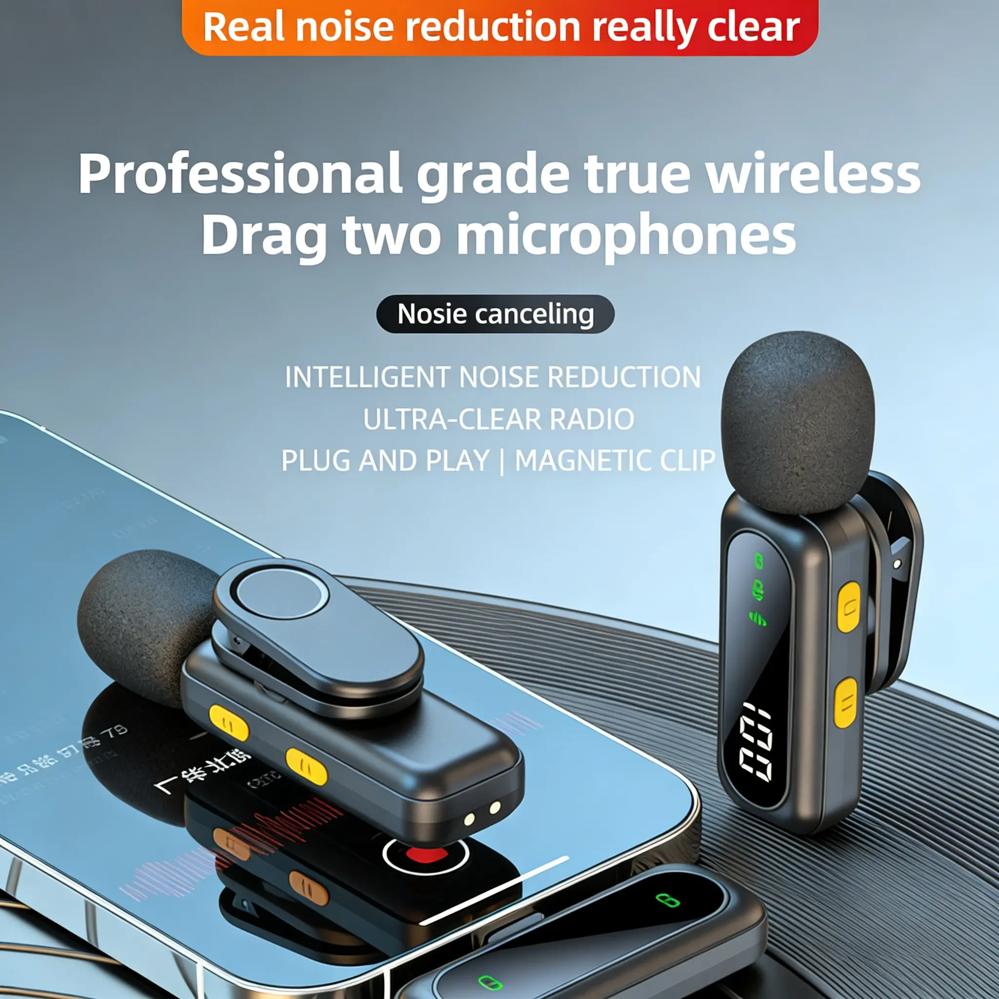 J21 Wireless Lapel Microphone, Live Streaming Mic, Plug-And-Play, Auto Pairing, Magnetic Clip, LED Display, Smart Noise Reduction, for iPhone Android USB Devices