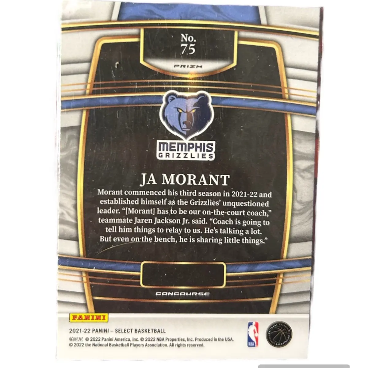 Ja Morant Blue Velocity Prizm 2021-22 Panini Select Basketball Memphis Grizzlies