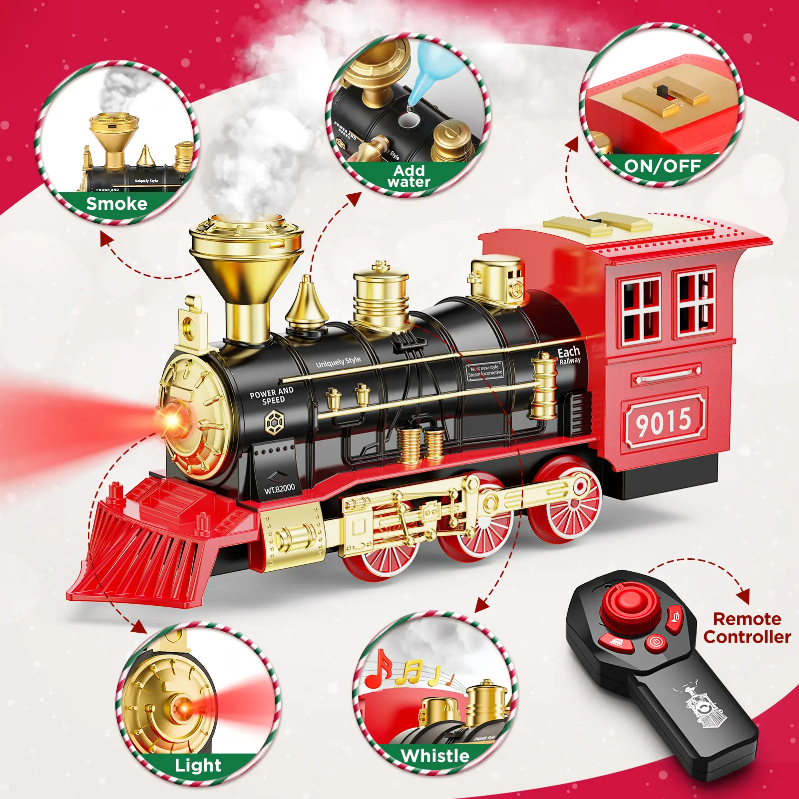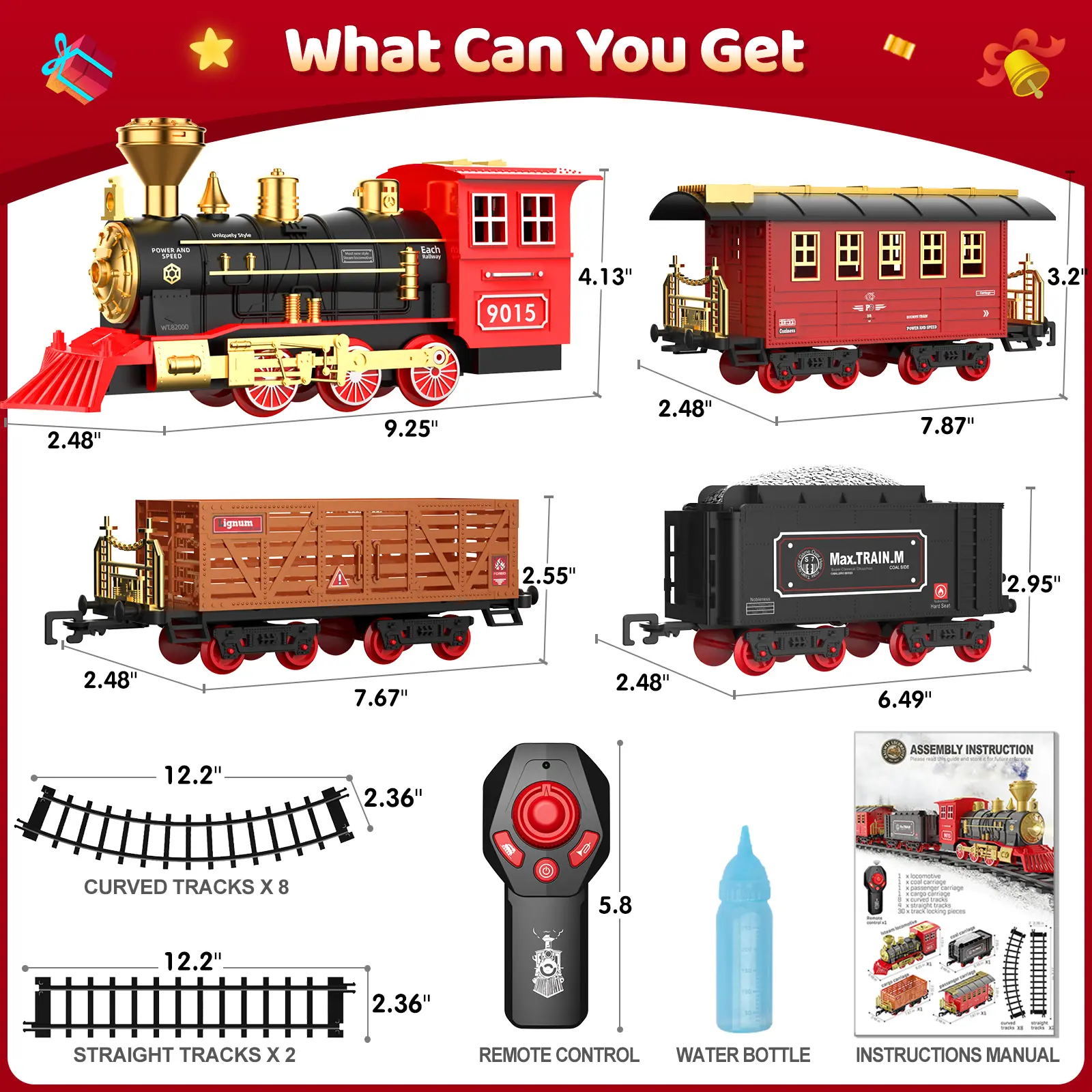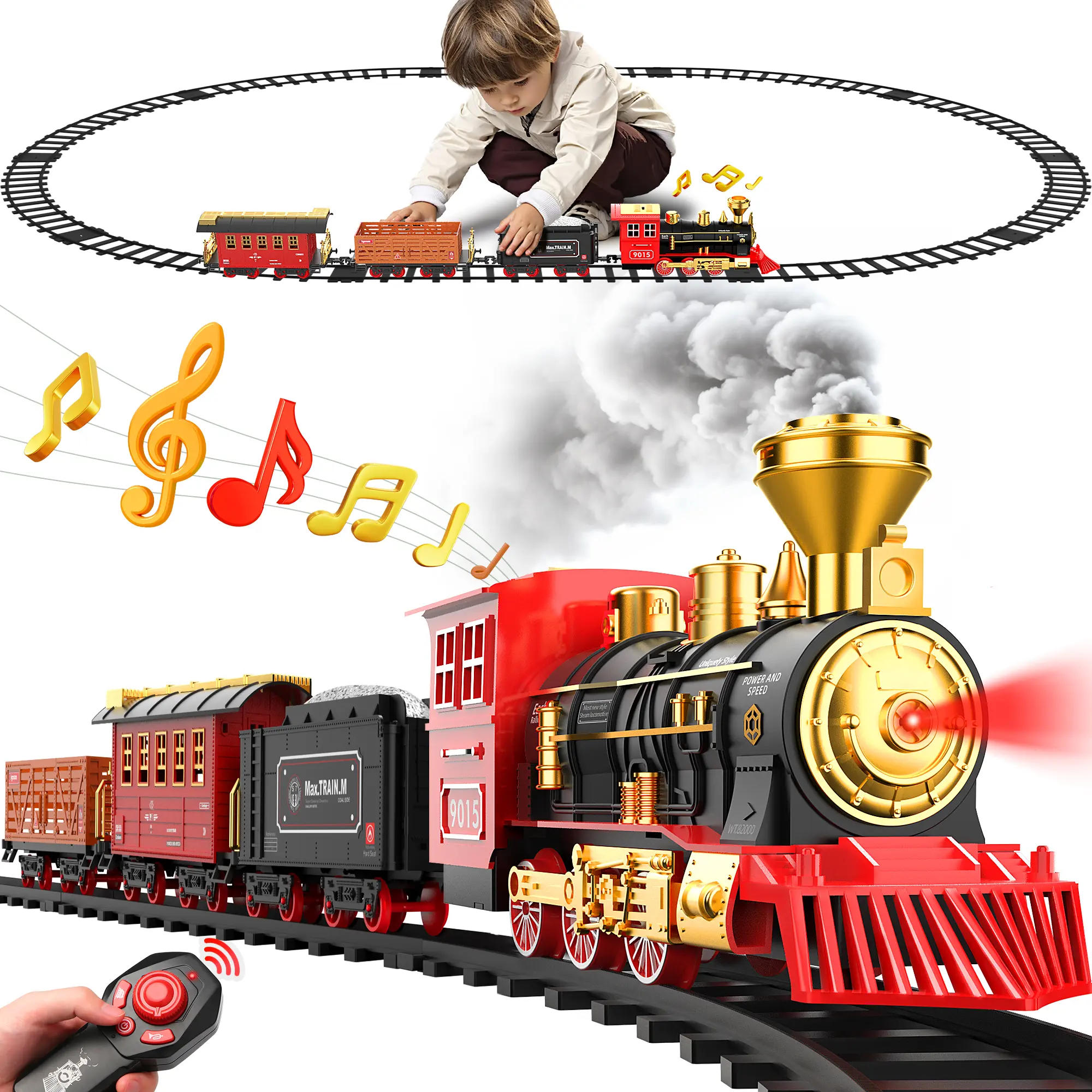 Hot bee Train Set - Train Toys for Boys with Smokes, Lights and Sound, Toy Train Set for Under Christmas Tree, Toddler Model Trains for 3 4 5 6 7 8+ Years Old Kids Christmas Toys Gifts