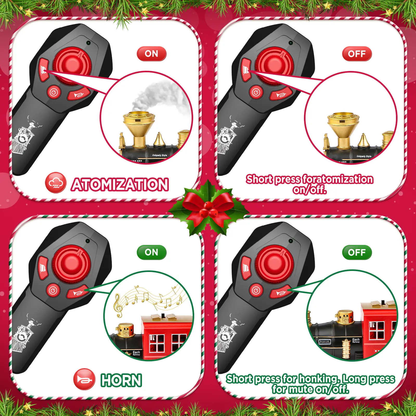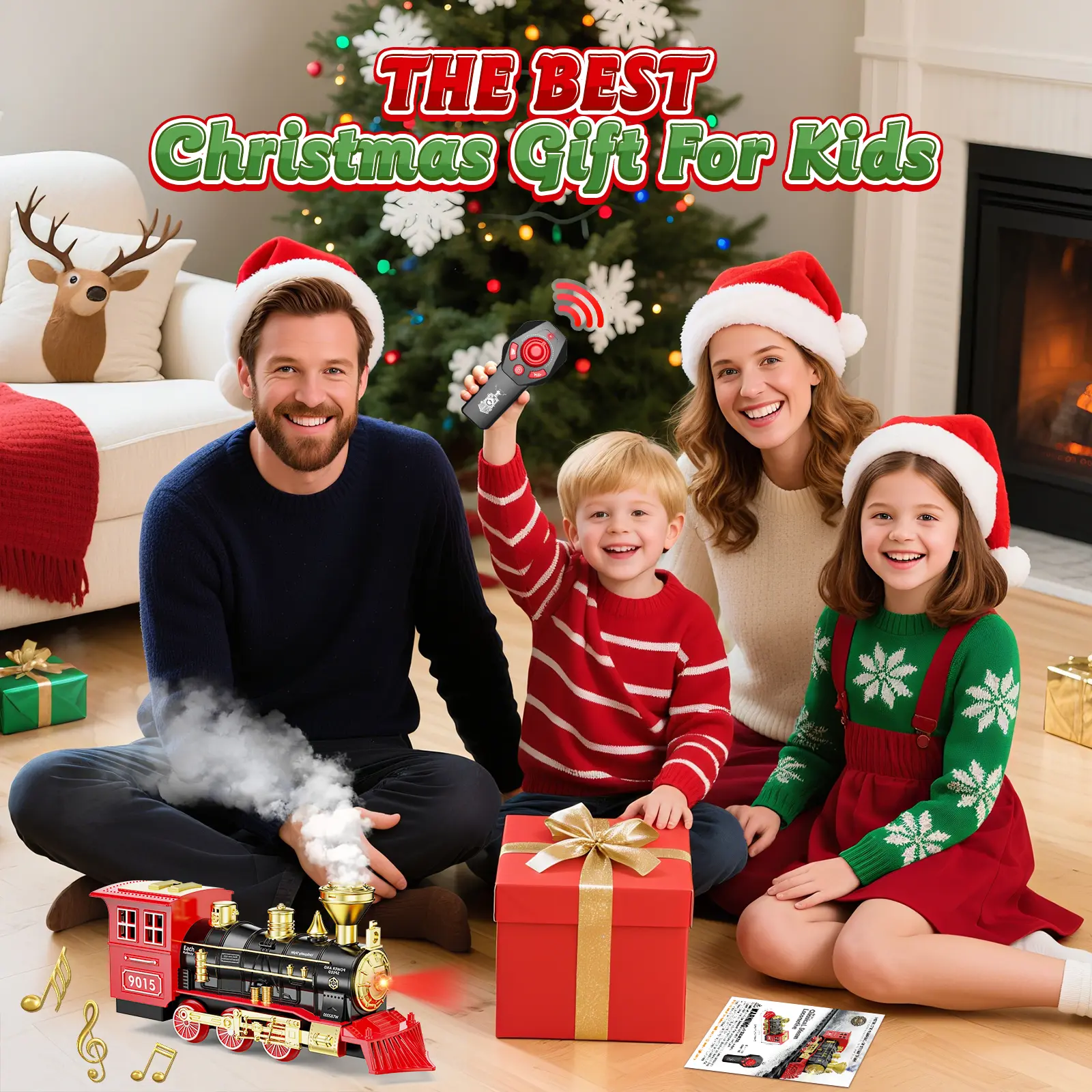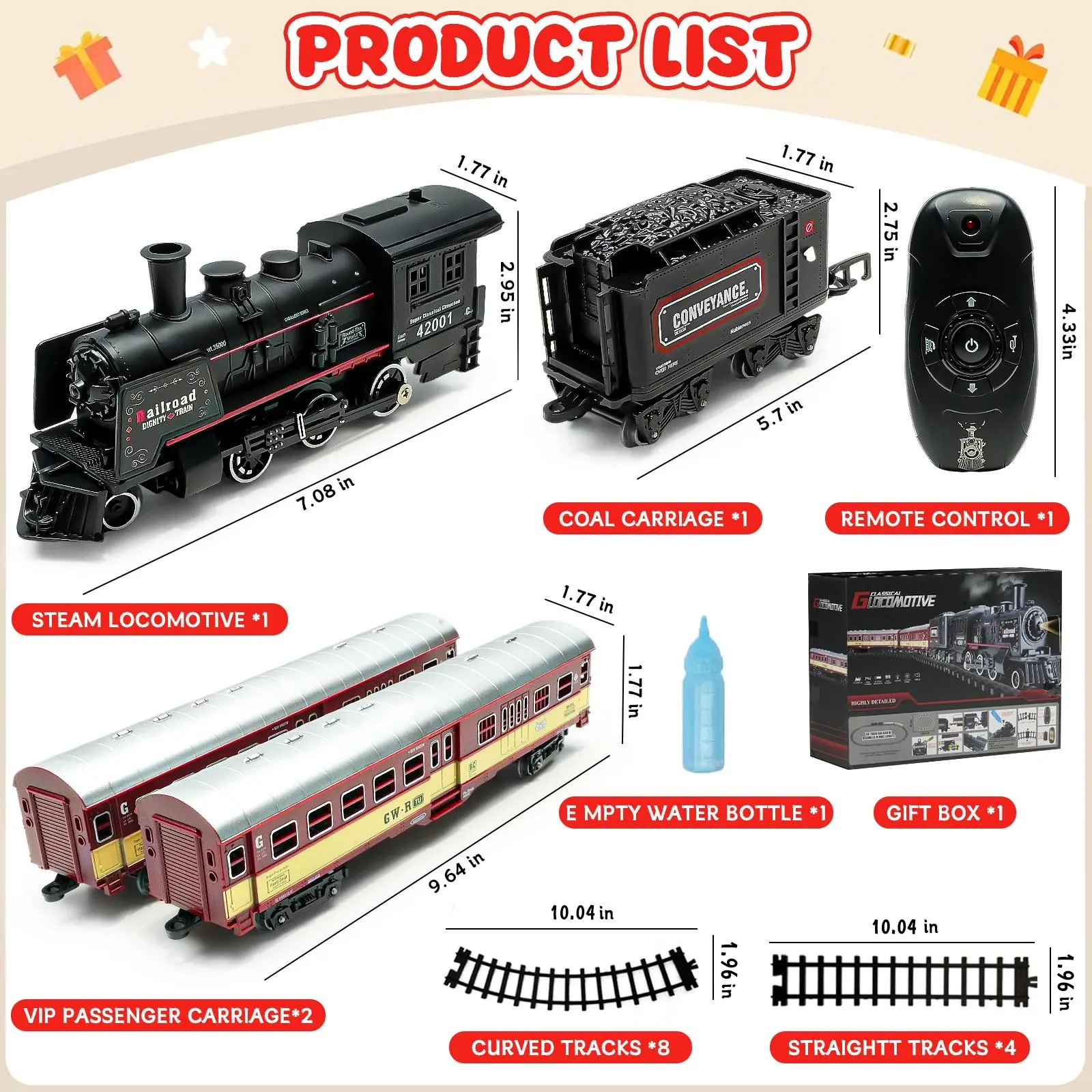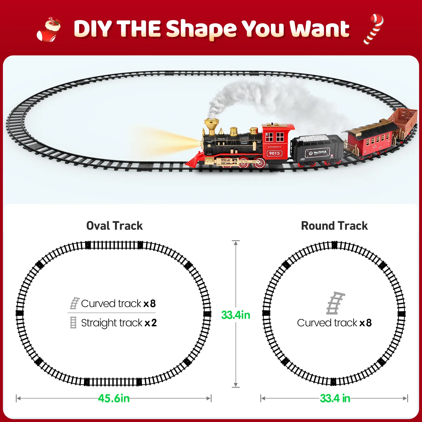 Hot bee Train Set - Train Toys for Boys with Smokes, Lights and Sound, Toy Train Set for Under Christmas Tree, Toddler Model Trains for 3 4 5 6 7 8+ Years Old Kids Christmas Toys Gifts