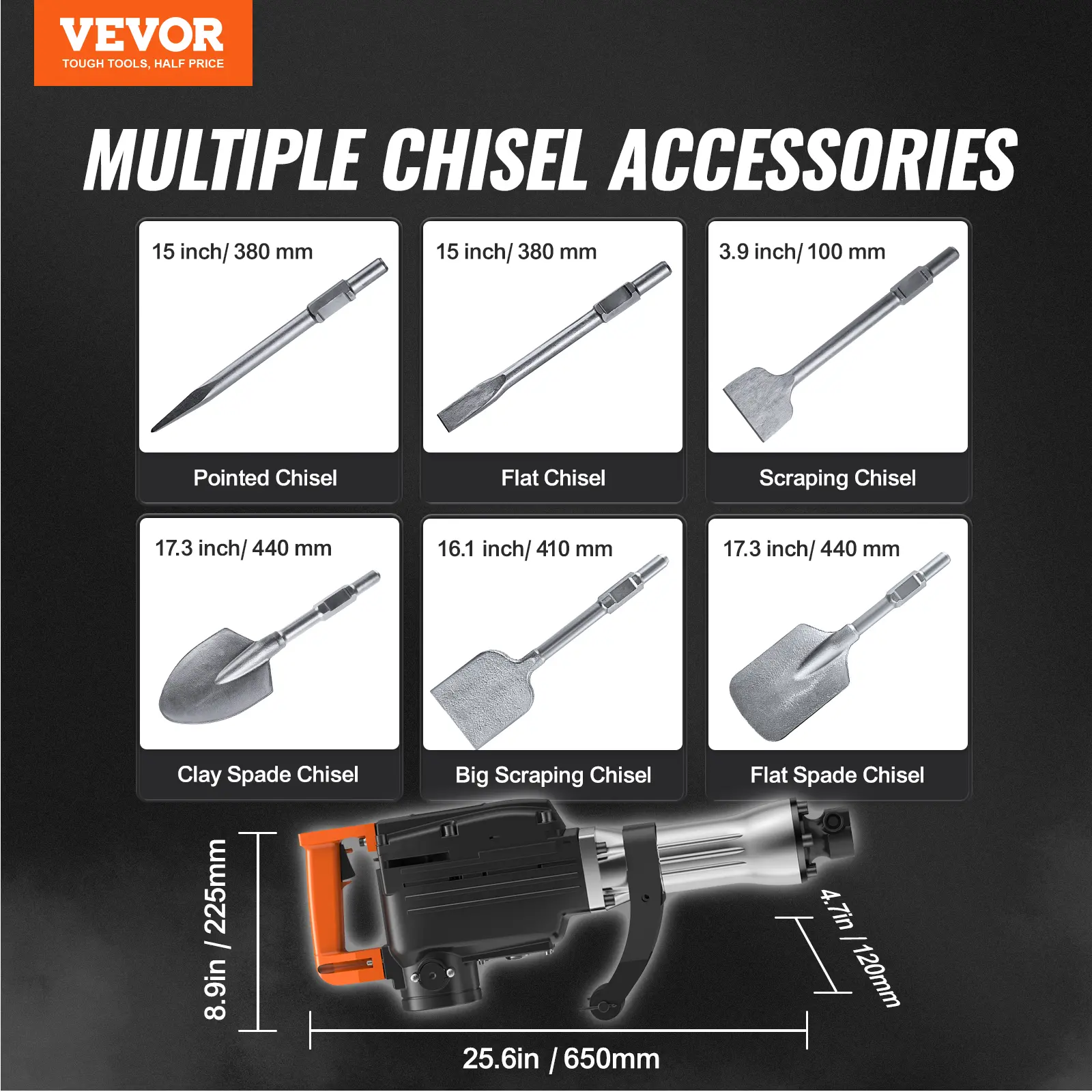 • Reassuring Experience: The high-strength alloy chuck can withstand the strong impact of the demolition operation. The chipping hammer chuck features quick assembly and disassembly. It is easy to replace the chisel that will never drop accidentally after being clamped. The handle is made of plastic to avoid electric shock hazards.