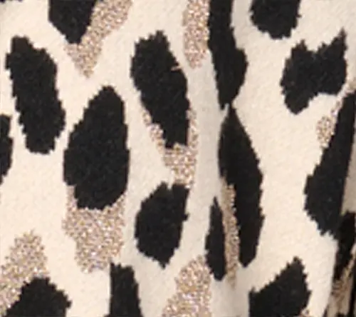 ·Features: open front, wrap-style with tie belt, side-seam pockets, allover animal print jacquard with twisted metallic details, fringed hem