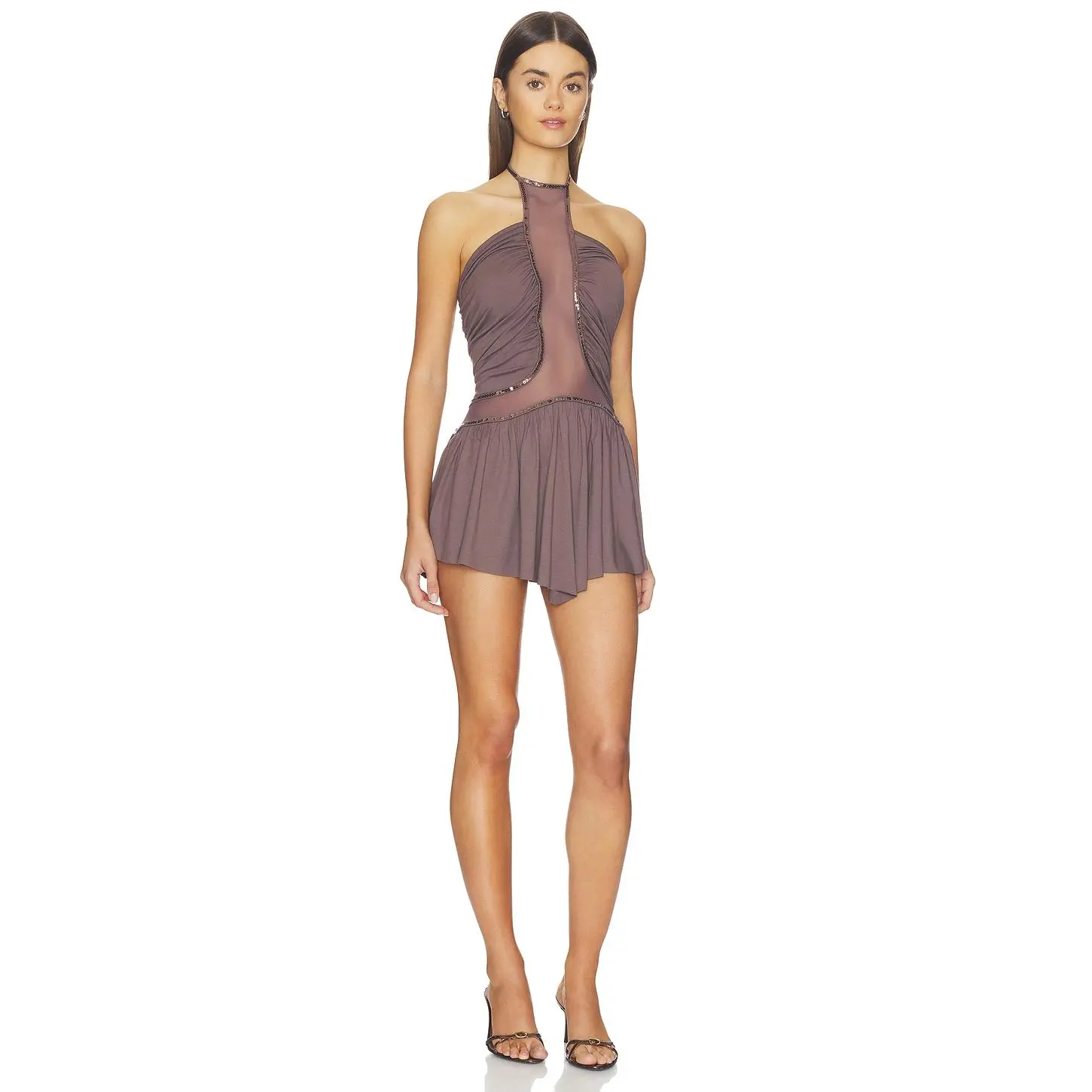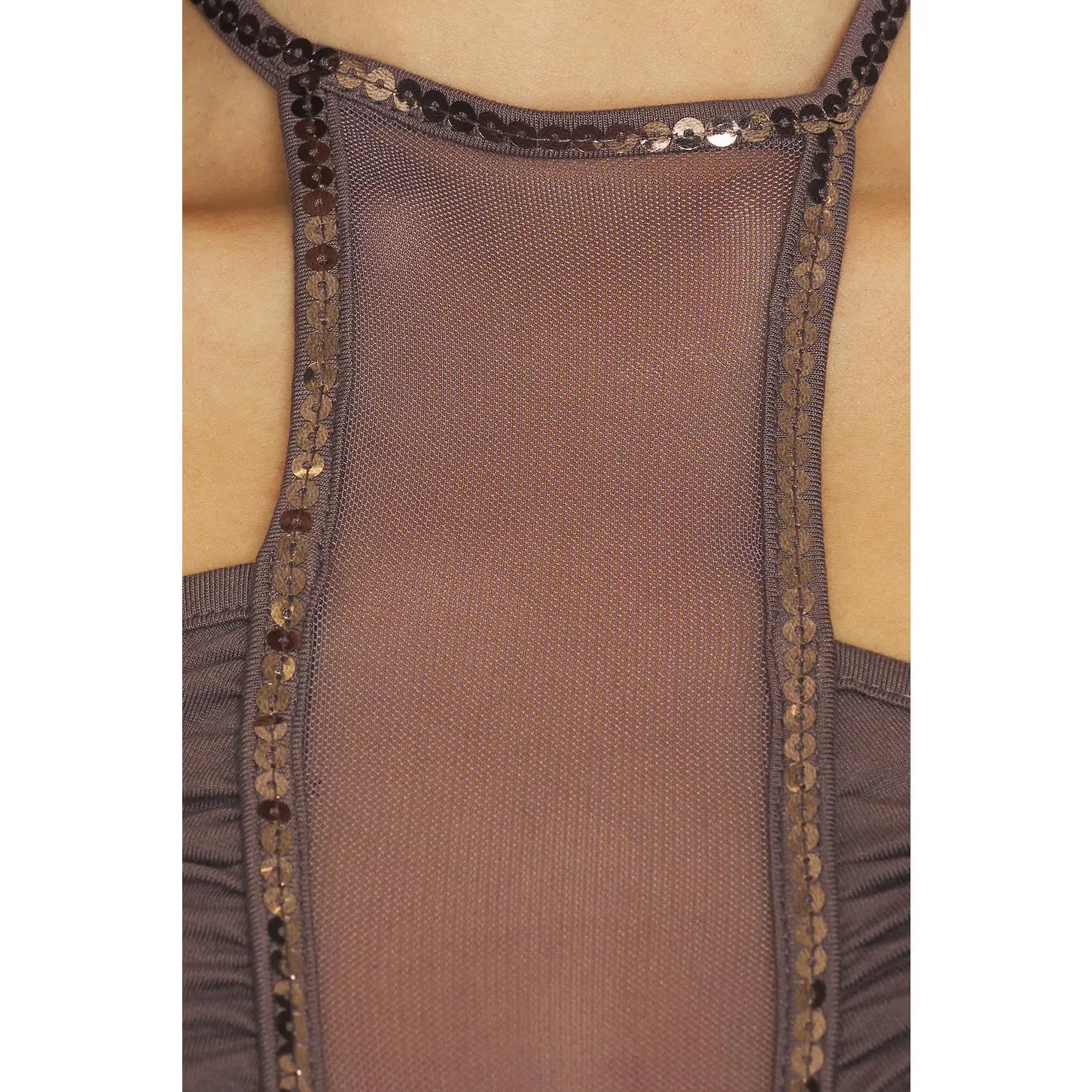 Jaded London Mesh Insert Sequin Trim Mini Dress in Brown