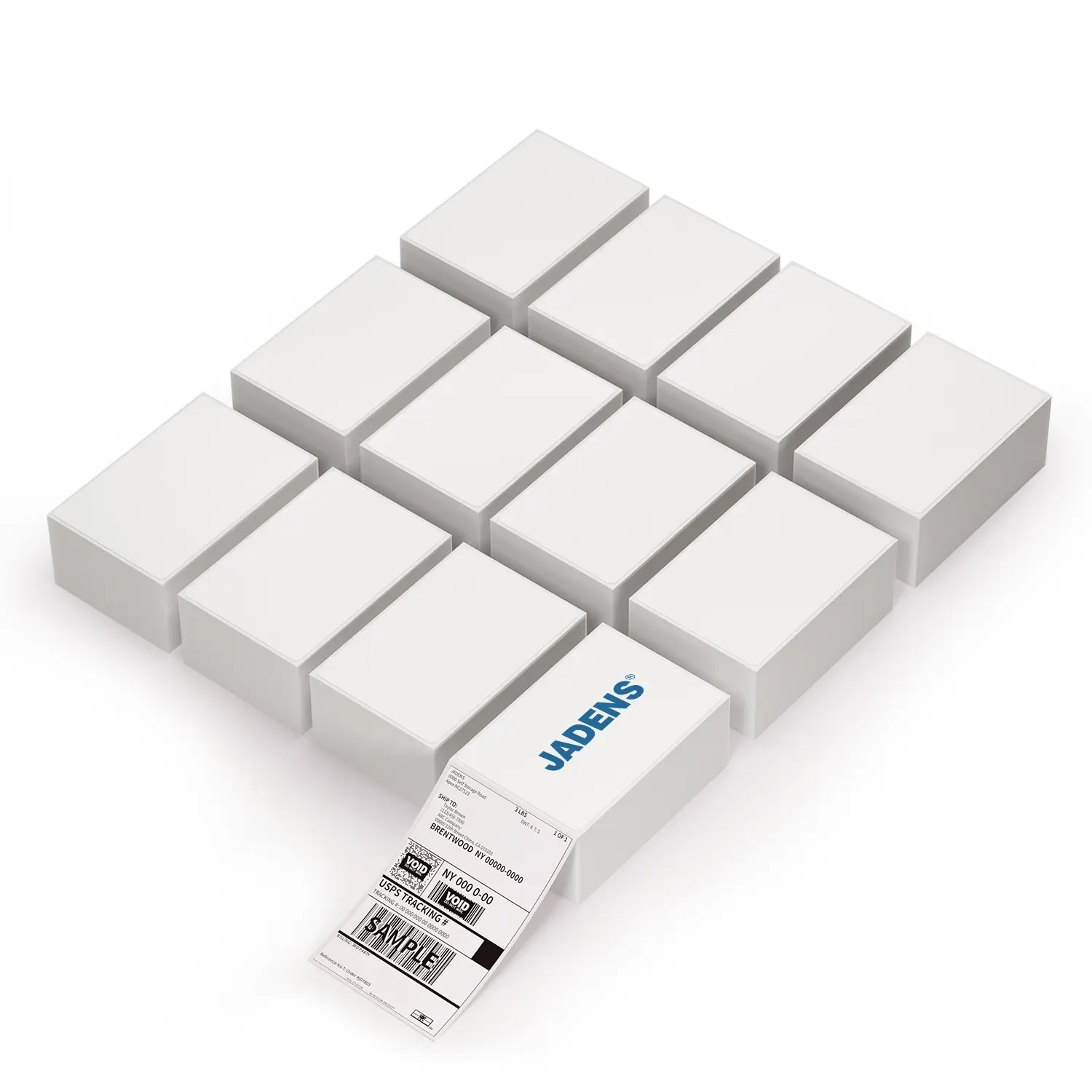 JADENS General-Purpose Shipping Labels (GR Series): Measuring 4" x 6" (101.6mm x 152.4mm), each stack contains 500 labels, with 12 stacks packed in a durable kraft carton to ensure protection during transit. Please note: these labels are designed exclusively for thermal printers and are not suitable for laser or inkjet printing.