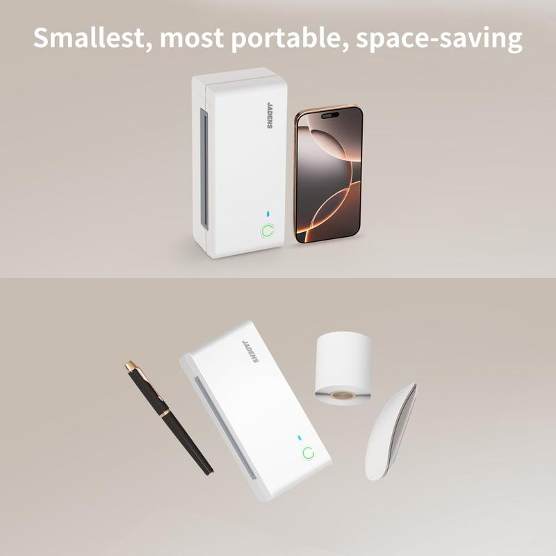This label printer supports Bluetooth printing through the “jadens” app on iOS and Android devices, and USB connection for computers. It is compatible with Windows, macOS, ChromeOS, and Linux, allowing users to print labels from smartphones, tablets, laptops, or desktop systems.