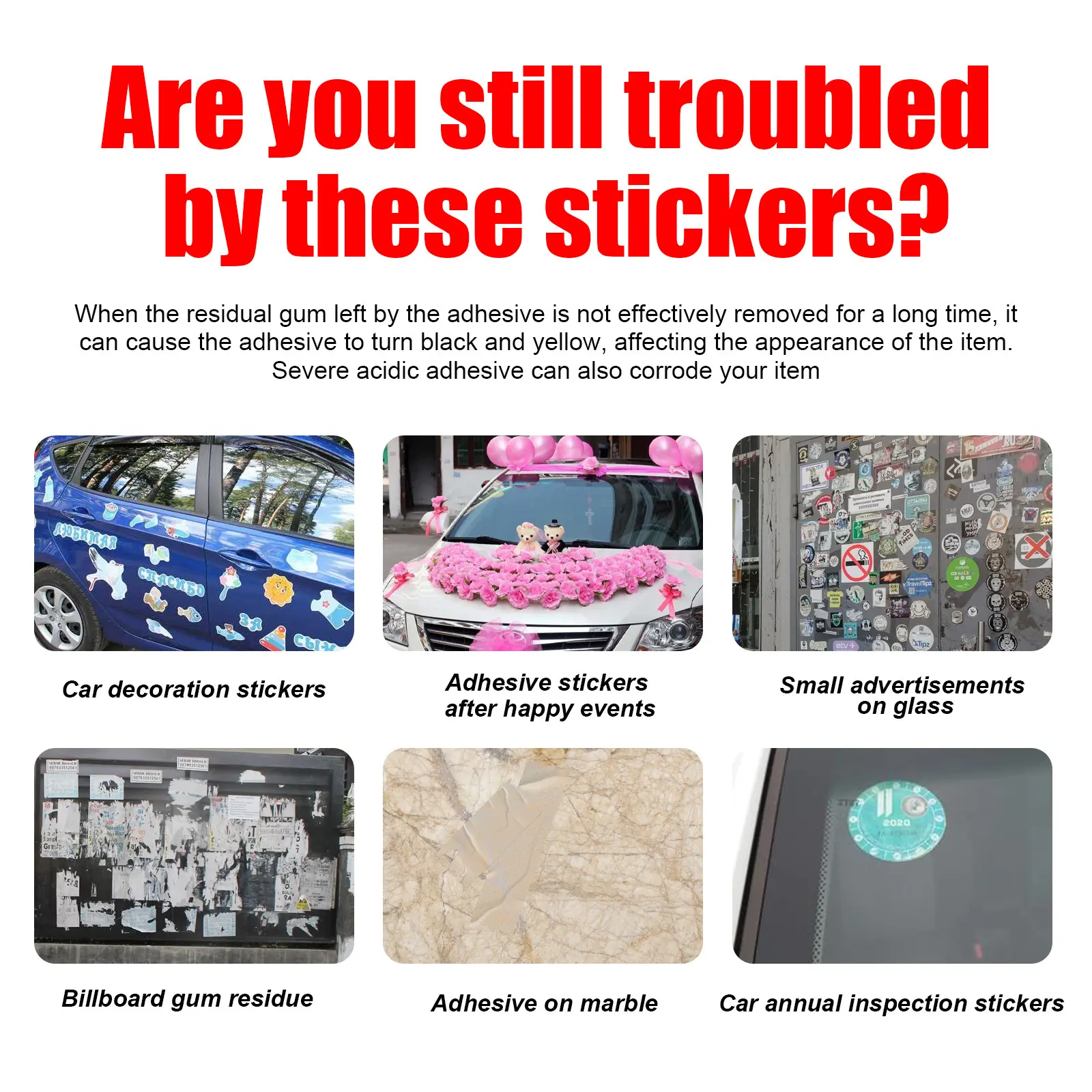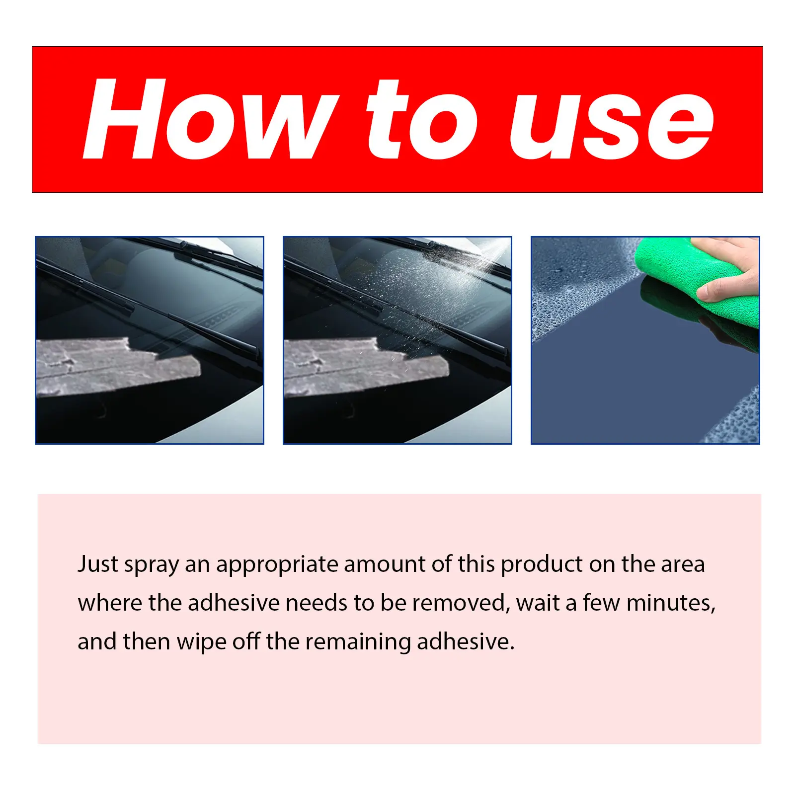 Simply apply the remover to the adhesive residue. It works effectively, leaving no sticky residue behind. Perfect for maintaining a clean car environment. 🧼