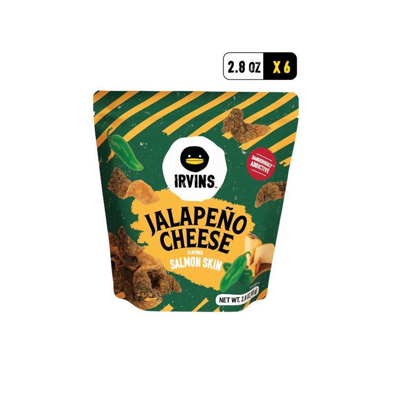 SAVOR THE BOLD FUSION OF FLAVORS WITH IRVINS JALAPENO CHEESE SALMON SKIN. CRAFTED FROM PREMIUM SALMON SKIN, EACH CRUNCHY BITE DELIVERS A PERFECT BALANCE OF SPICY JALAPENO AND CREAMY CHEESE. IDEAL FOR ON-THE-GO SNACKING OR SHARING, INDULGE IN THIS IRRESISTIBLE TREAT THAT PROMISES TO ELEVATE ANY OCCASION WITH ITS DISTINCTIVE FLAVOR AND SATISFYING CRUNCH.