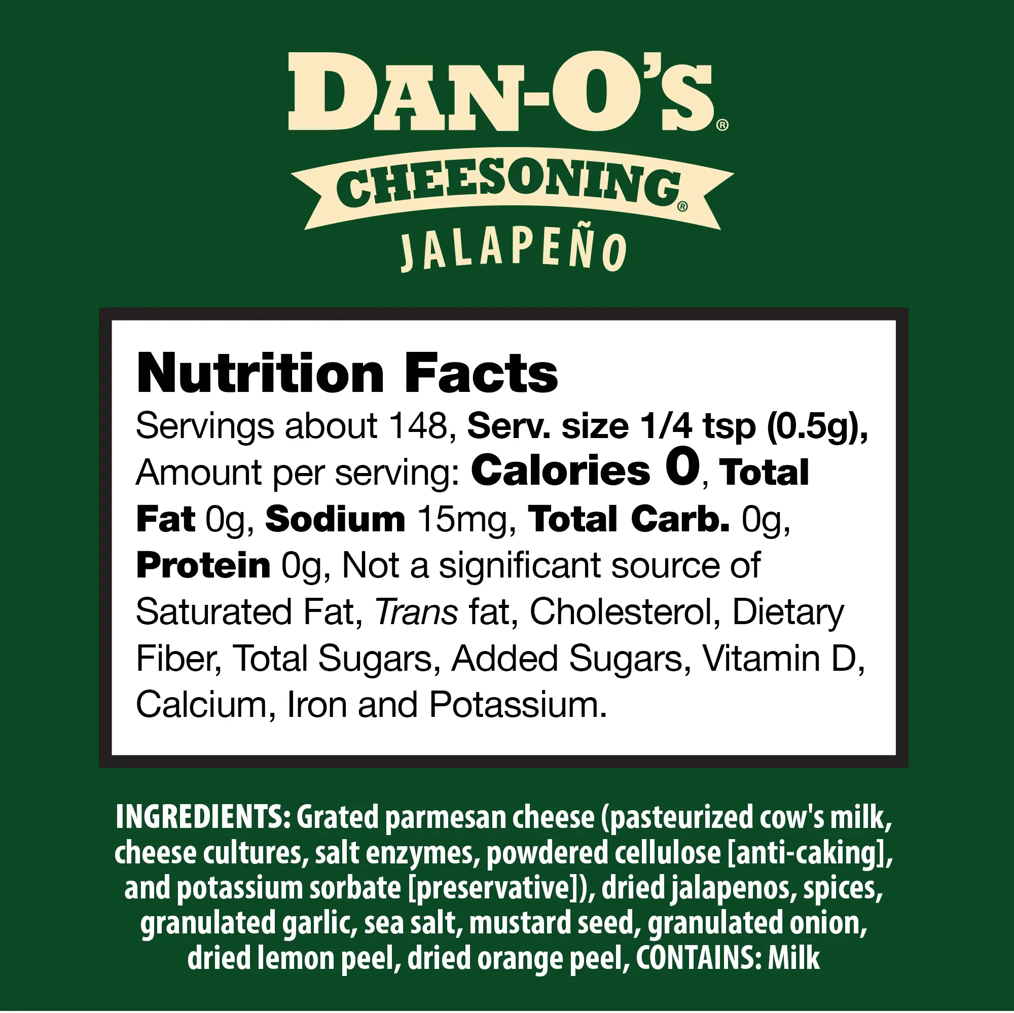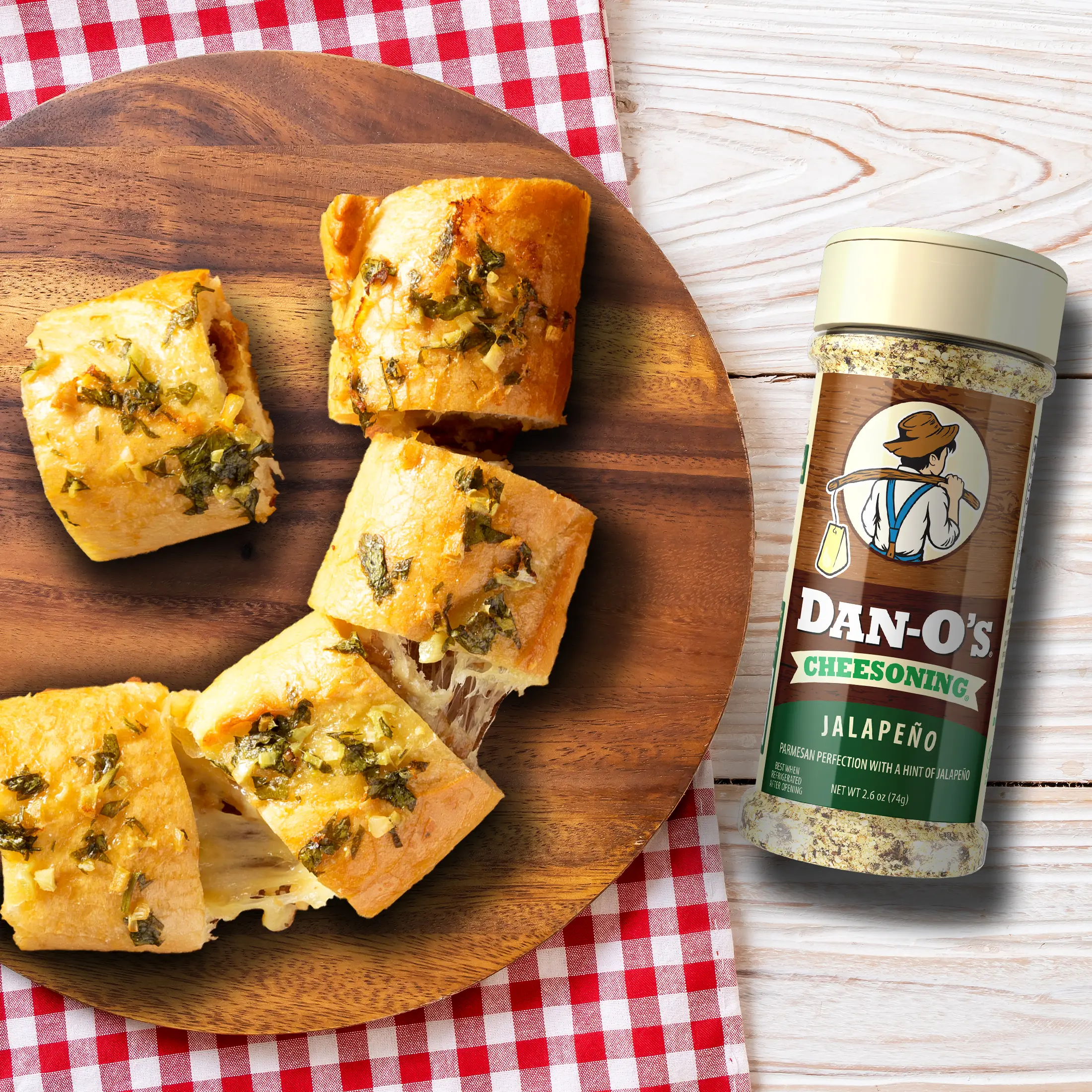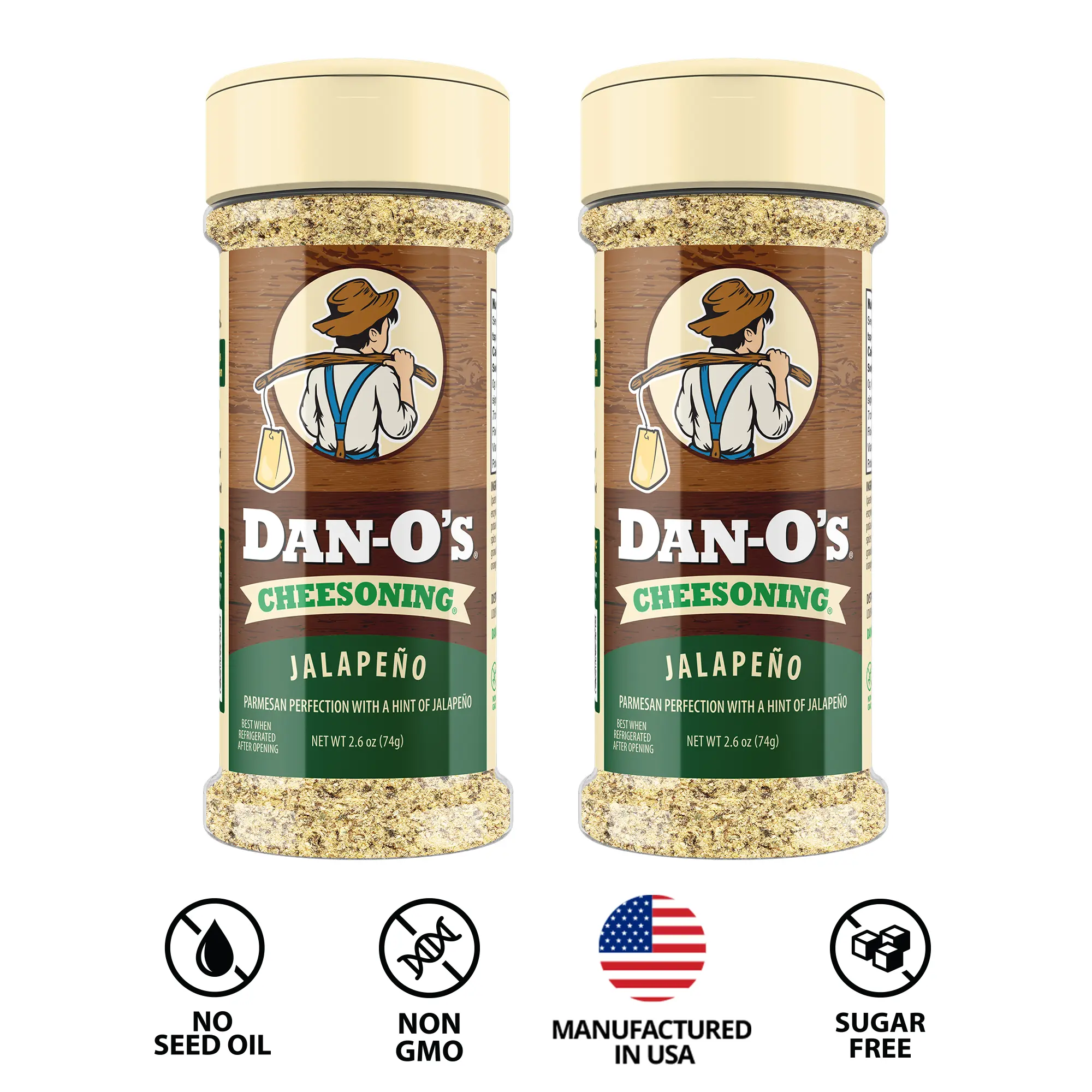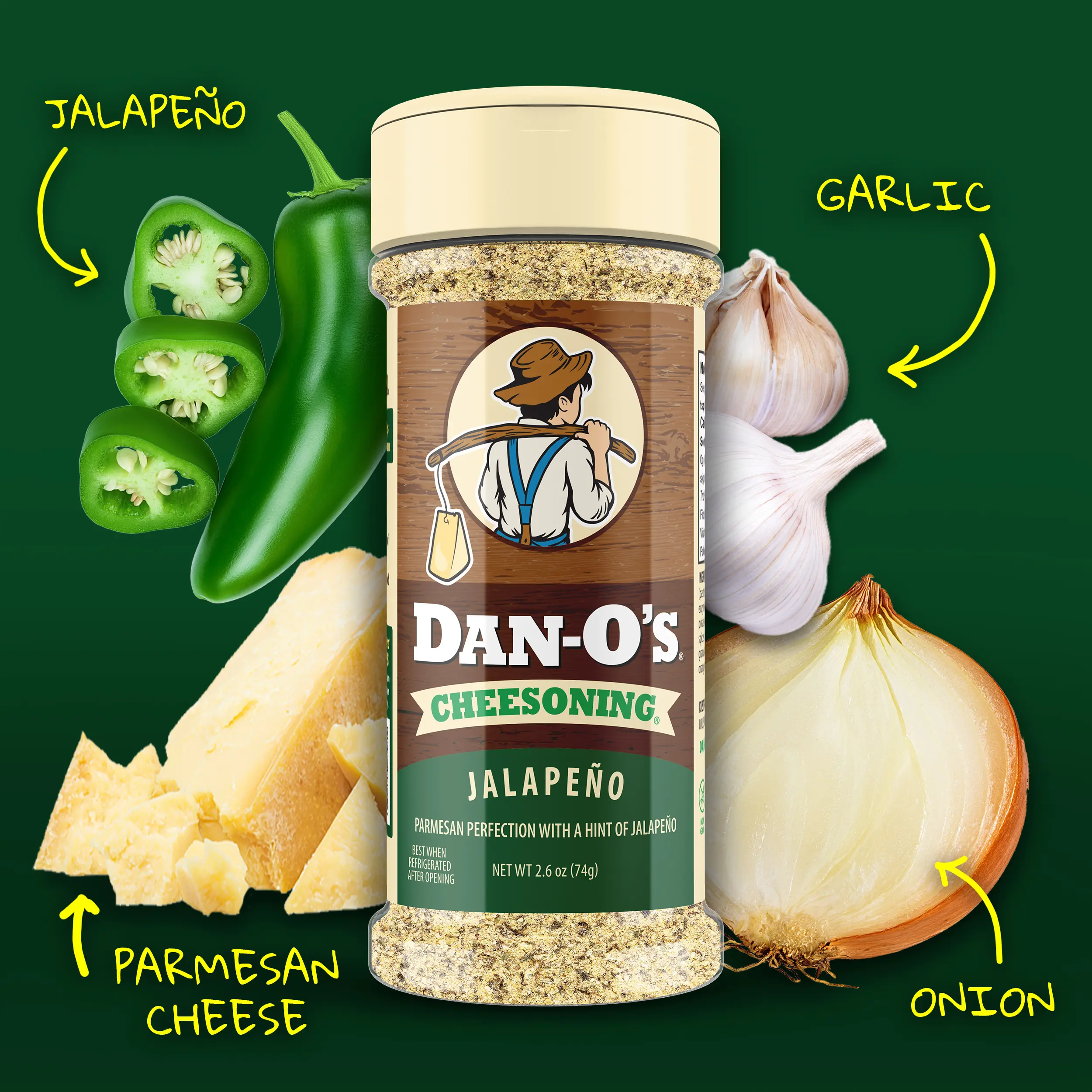 ·Jalapeño Twist: Jalapeño Cheesoning® is a zesty replacement for your boring old parmesan. It takes rich full-bodied parmesan and combines it with savory Italian herbs and spices with jalapeño for an extra kick without being too spicy. It’s Dantastic® in pasta, pizza, and other recipes where you want to spice it up with a cheesy twist.