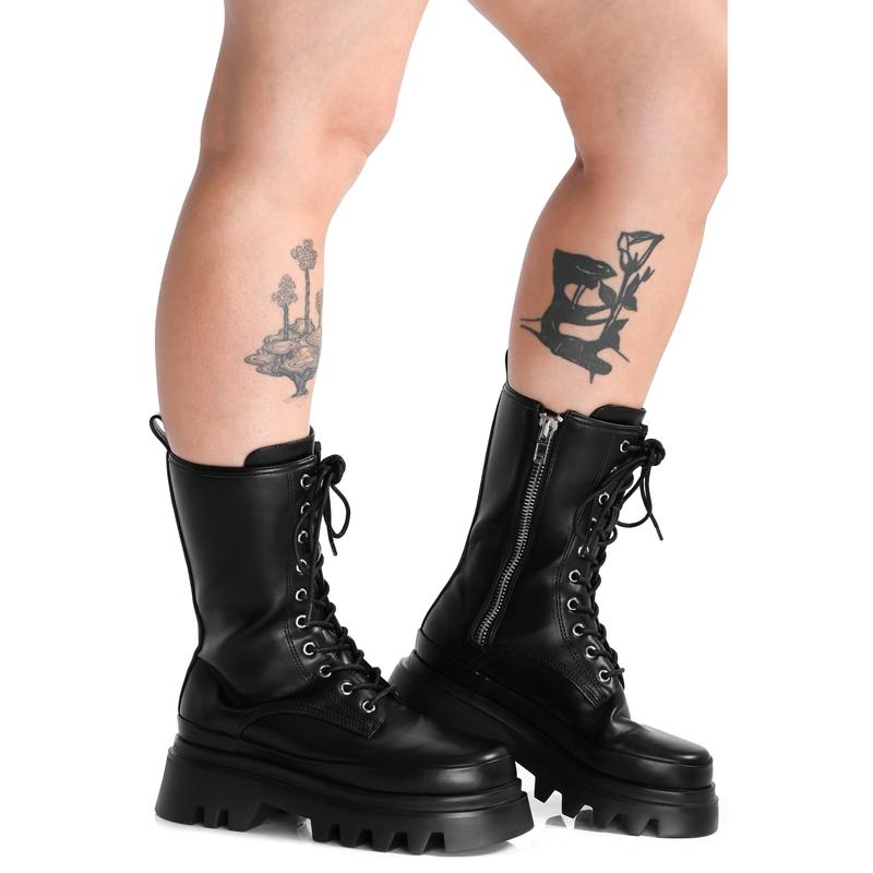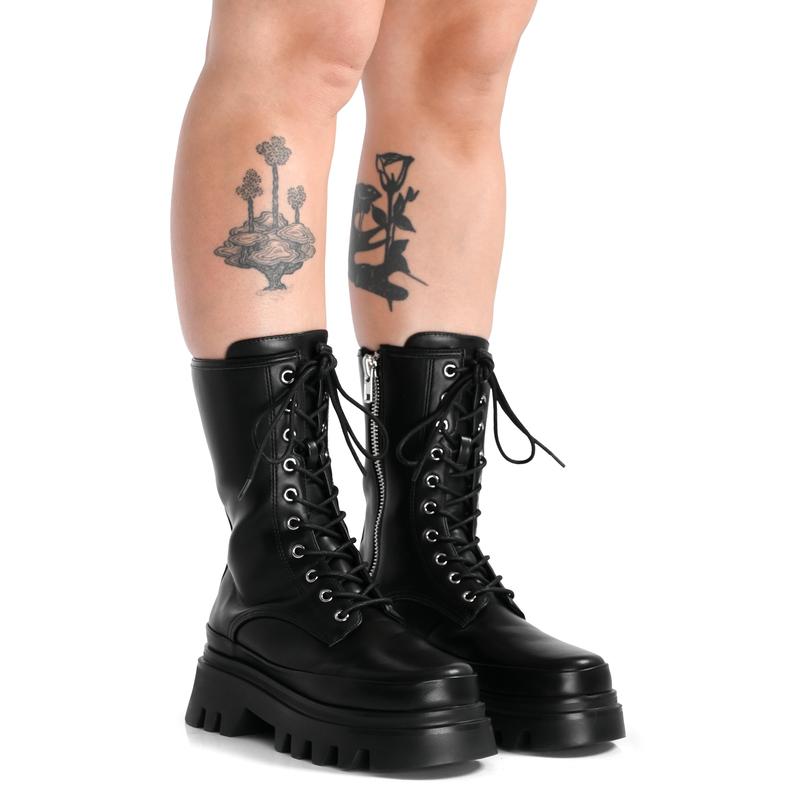 Classic black combat boots with a chunky platform.