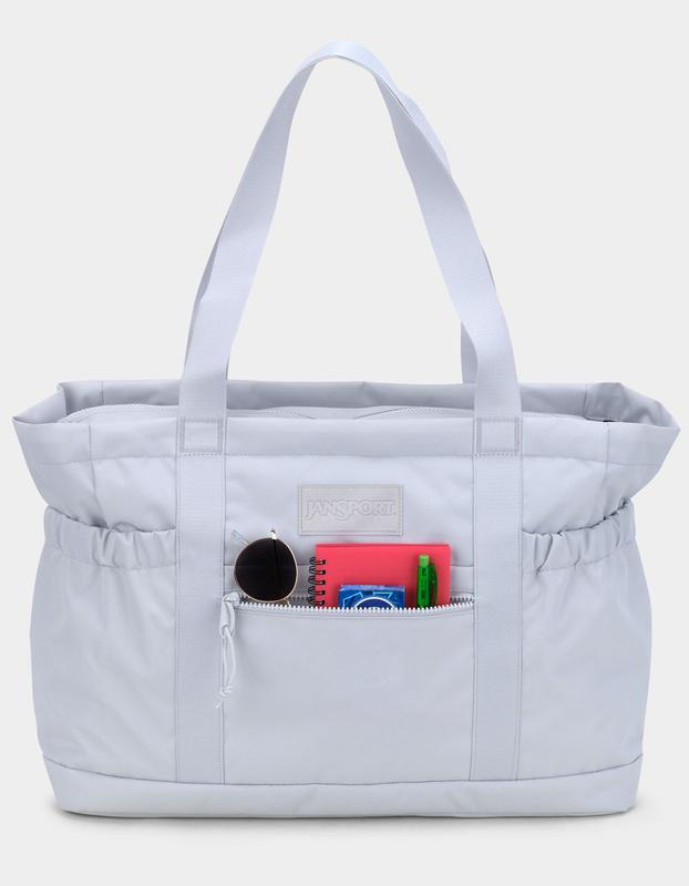 JanSport Everyday Large Tote Bag. Slay the day with the Everyday Large Tote. Store all your gear in multiple zippered compartments and deep side pockets, a 15-inch padded laptop sleeve, and a water bottle pouch. Your new long-day bestie. Imported. Product Features:•Spacious main compartment•Dual expandable side water bottle pockets•100% recycled 600 denier polyester main body fabric is built to last•15" padded and plush lined laptop sleeve•Internal zippered stash pocket•Padded bottom boot•Spacious zippered front pocket•Webbing grab handle on top Content & Dimensions:•100% Recycled 600 Denier Polyester Main Body Fabric•Dimensions: 19" x 14" x 7". Capacity: 31 Liters. MANUFACTURER'S LIFETIME WARRANTY